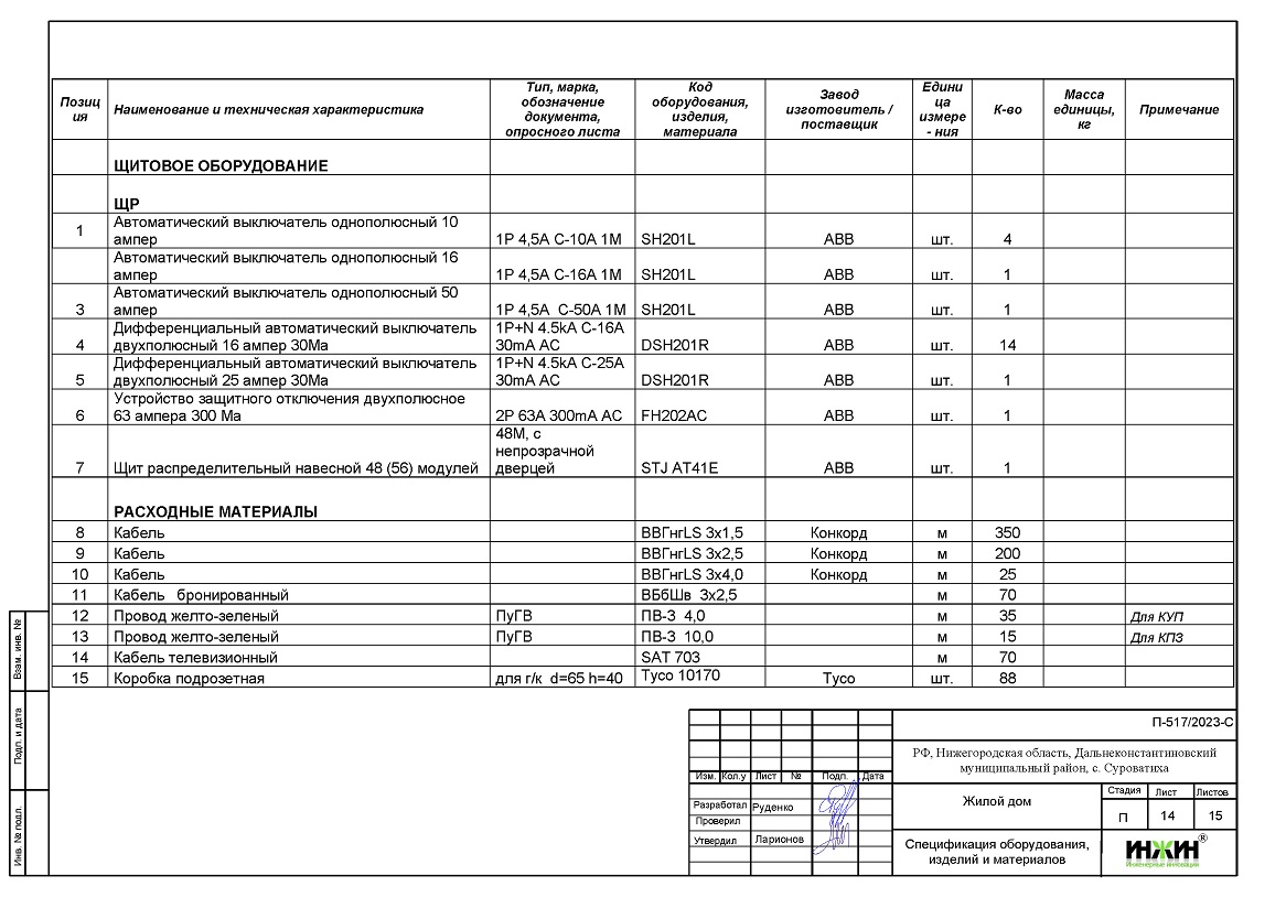 Проект электрики дома в Воронежской области (130 м.кв.)