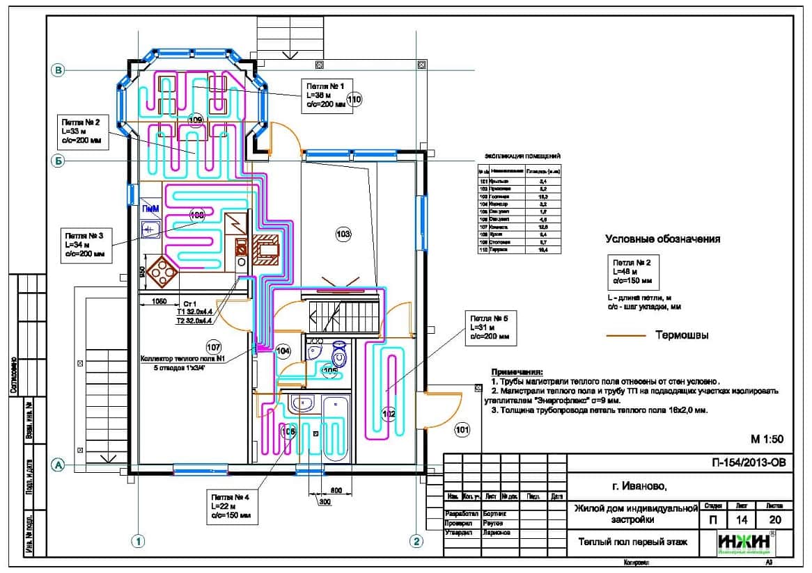 Теплоснабжение теплого пола запроектировано отдельным контуром котельной. Трубопроводы теплого пола - сшитый полиэтилен Rehau.