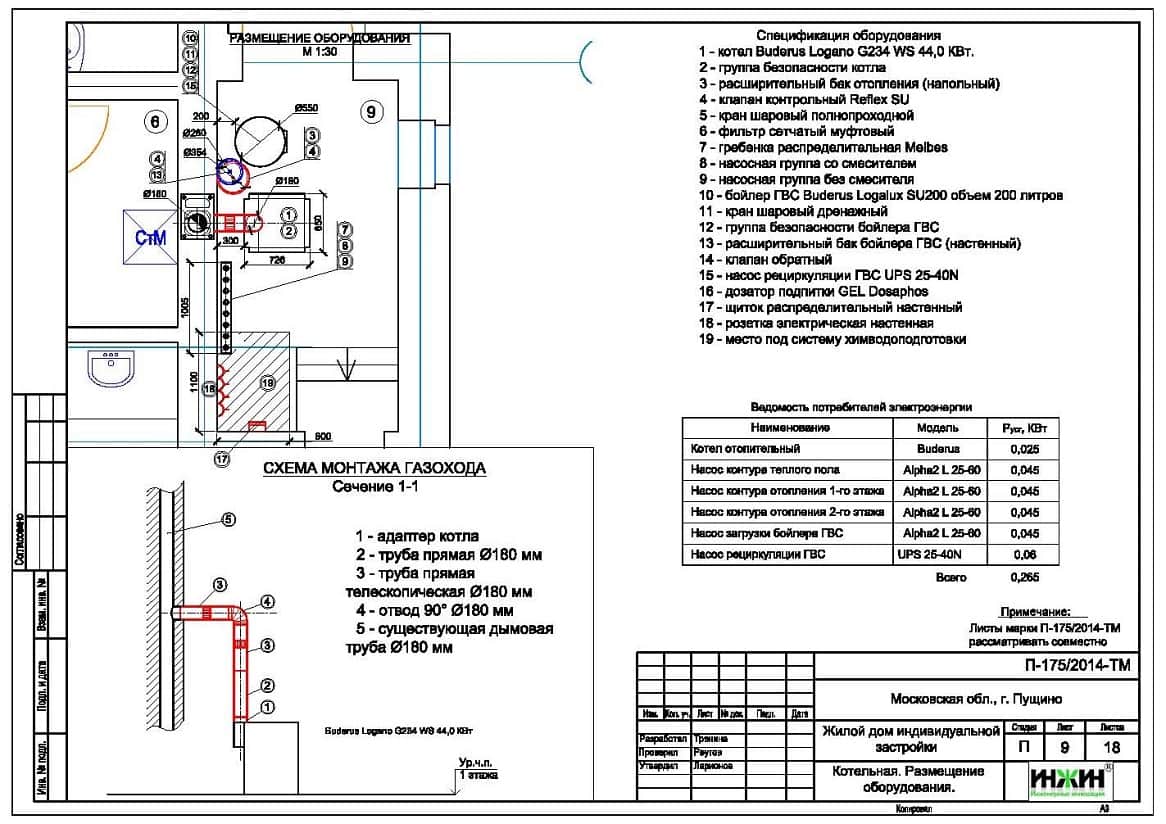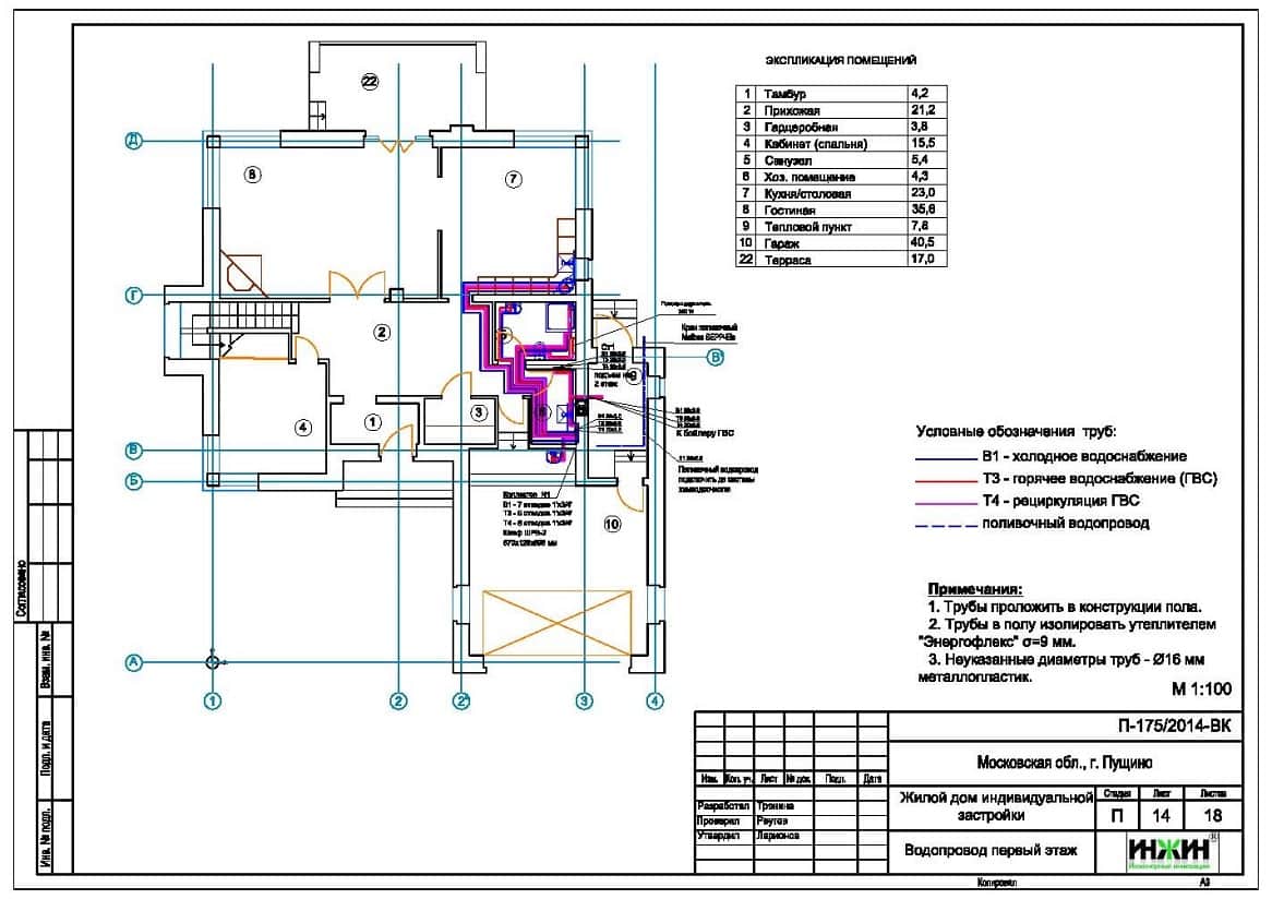 Проект отопления, водоснабжения и канализации дома площадью 302 м.кв. в г.Пущино