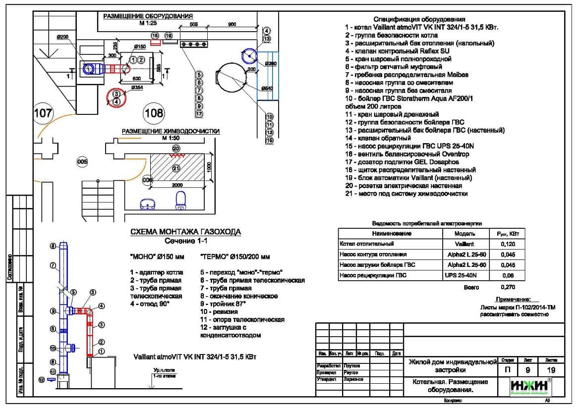 Состав проекта котельной, отопления, водоснабжения и канализации дома: