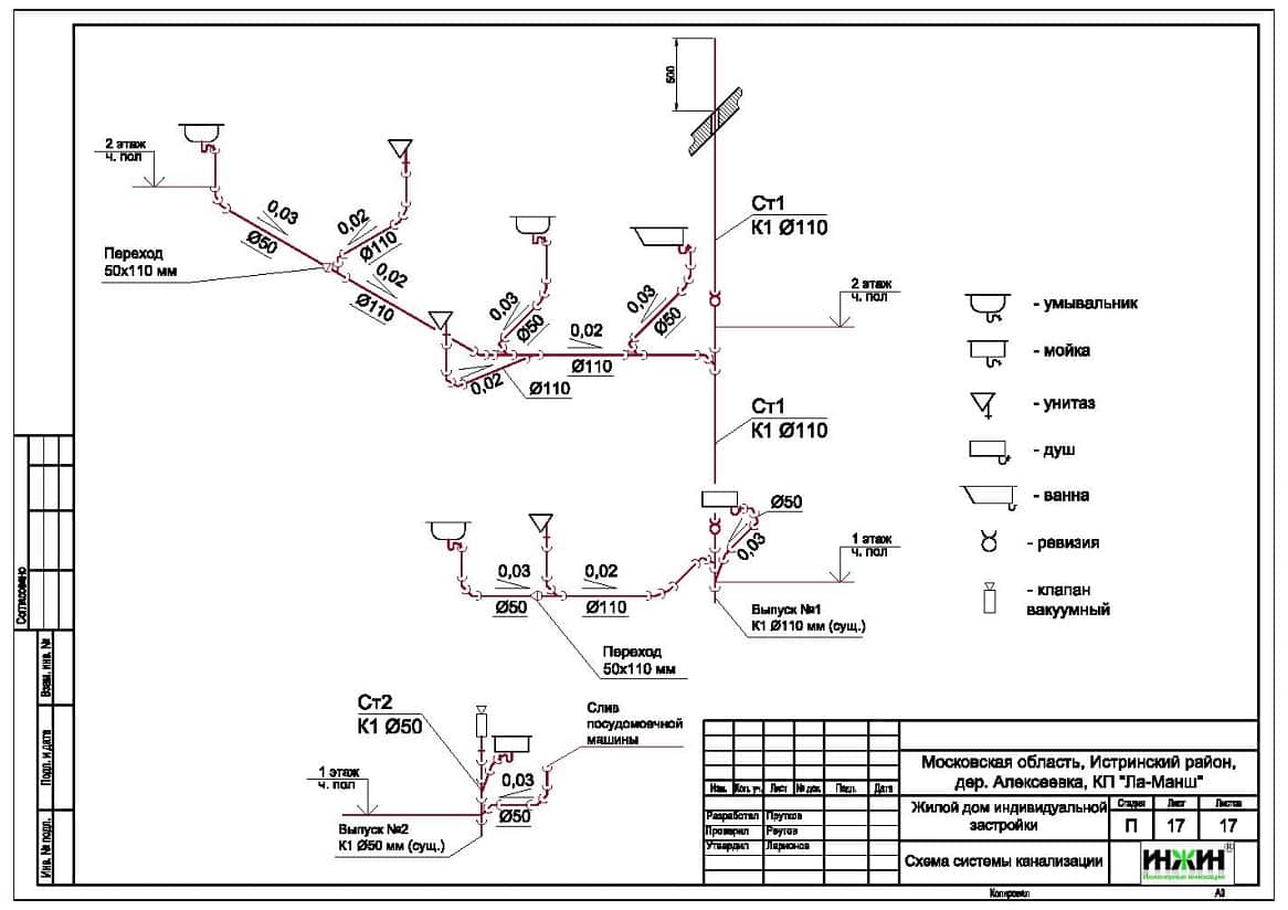 6. Комплект чертежей внутреннего водопровода и канализации жилого дома.