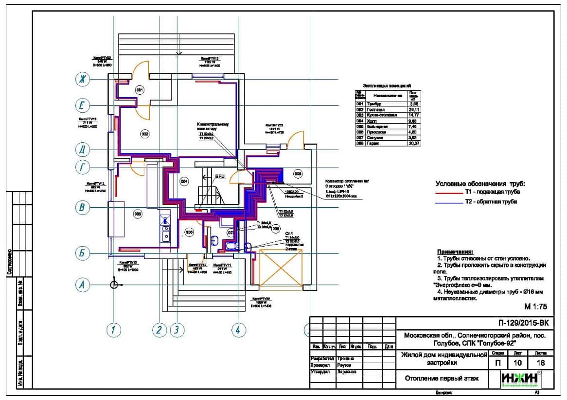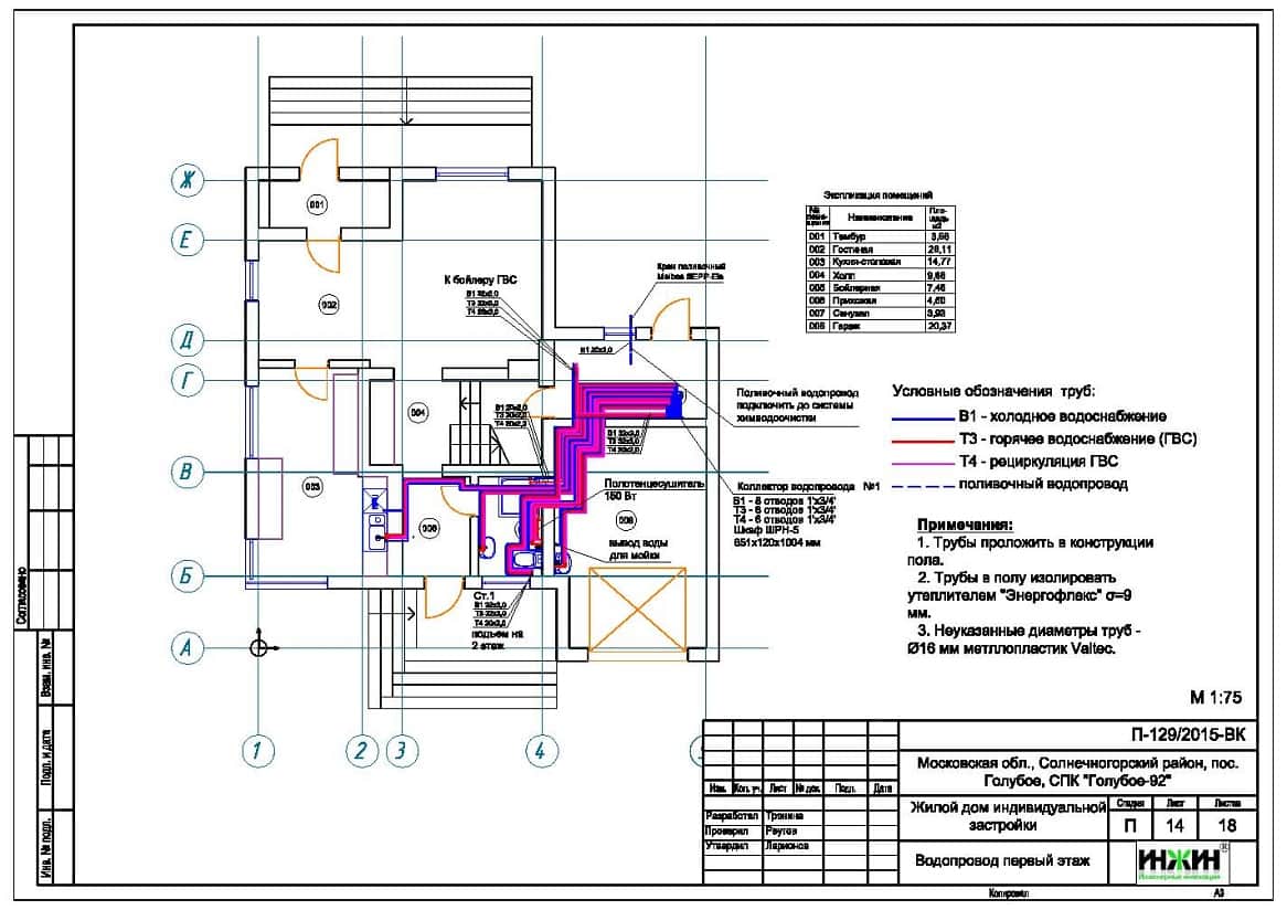 Проект отопления, водоснабжения и канализации частного дома площадью 152 м.кв.