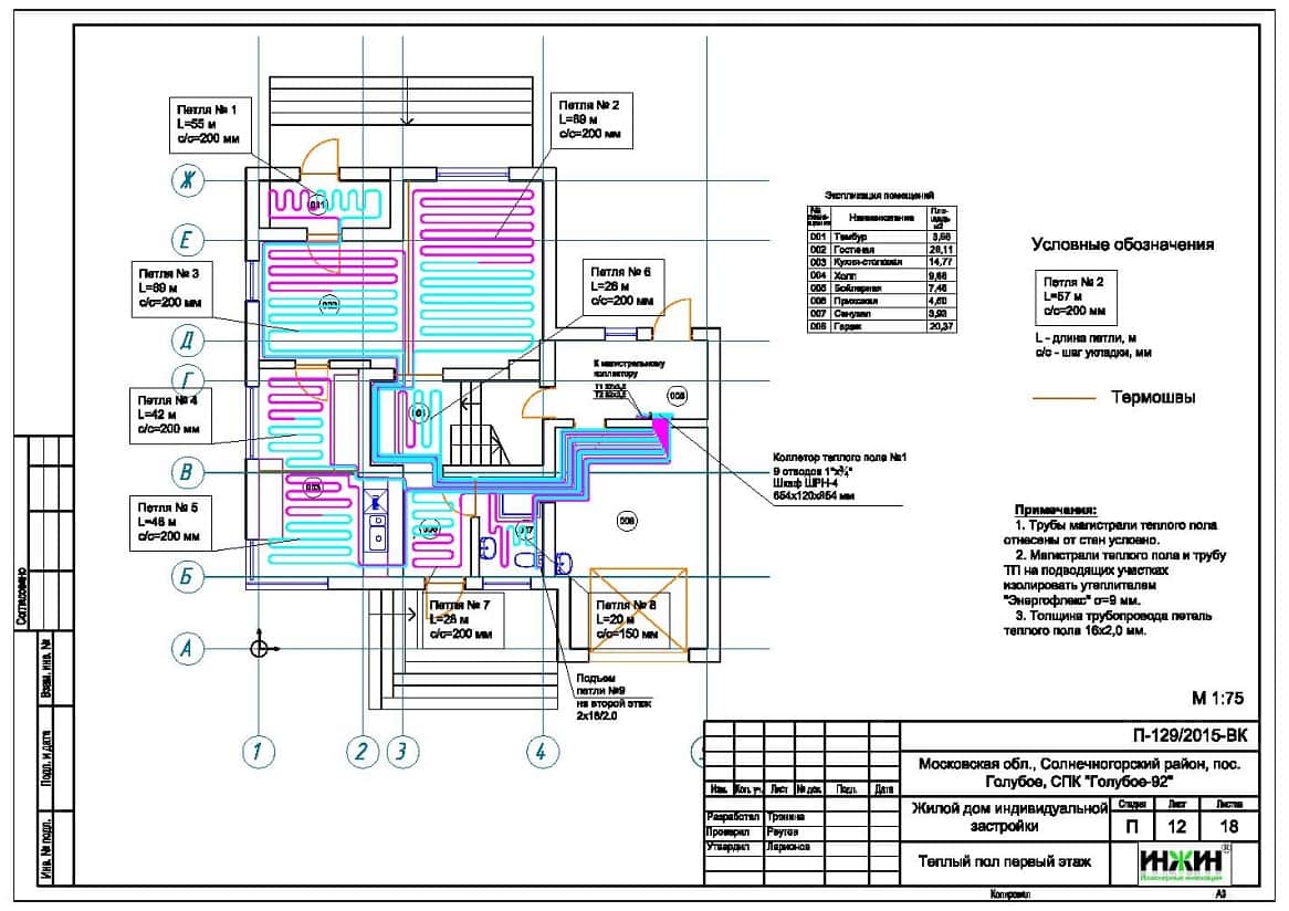 o Теплый пол предусмотрен на площади 82 м.кв.