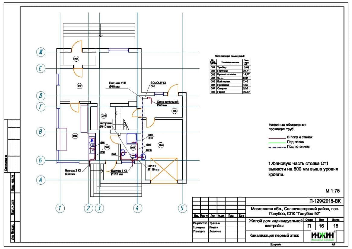 Проект отопления, водоснабжения и канализации выполнен: 03.07.2015г.