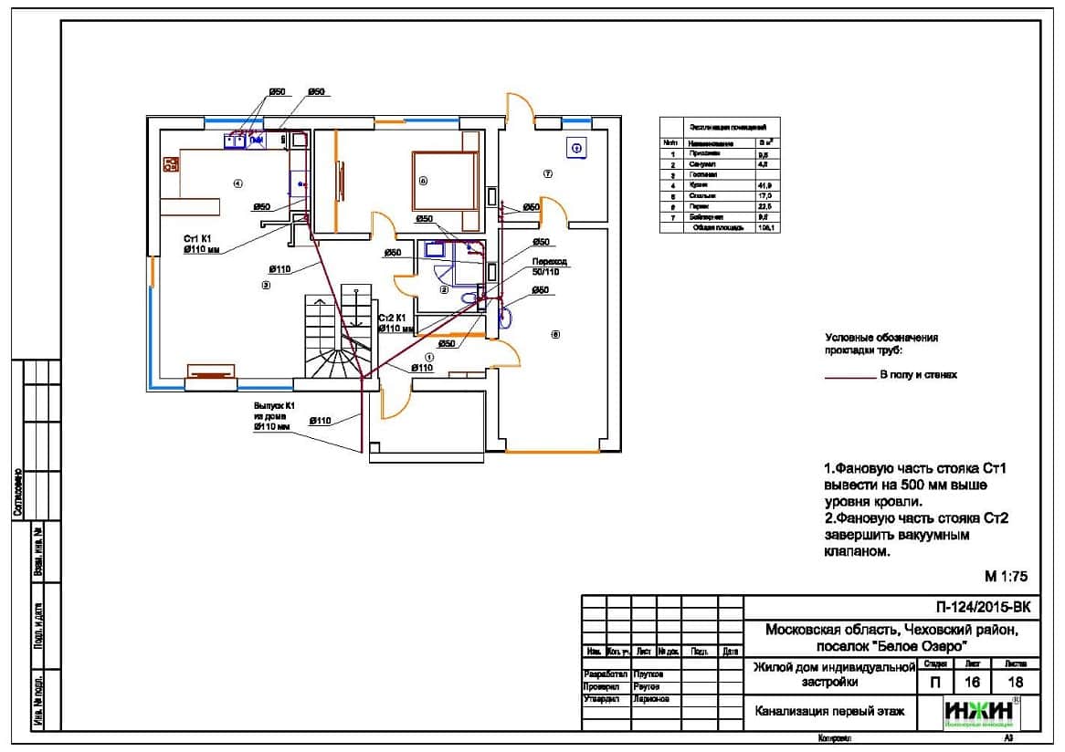 Предусмотрен безнапорный отвод стоков от санитарно-технических приборов, трубопроводы канализации - Синикон.