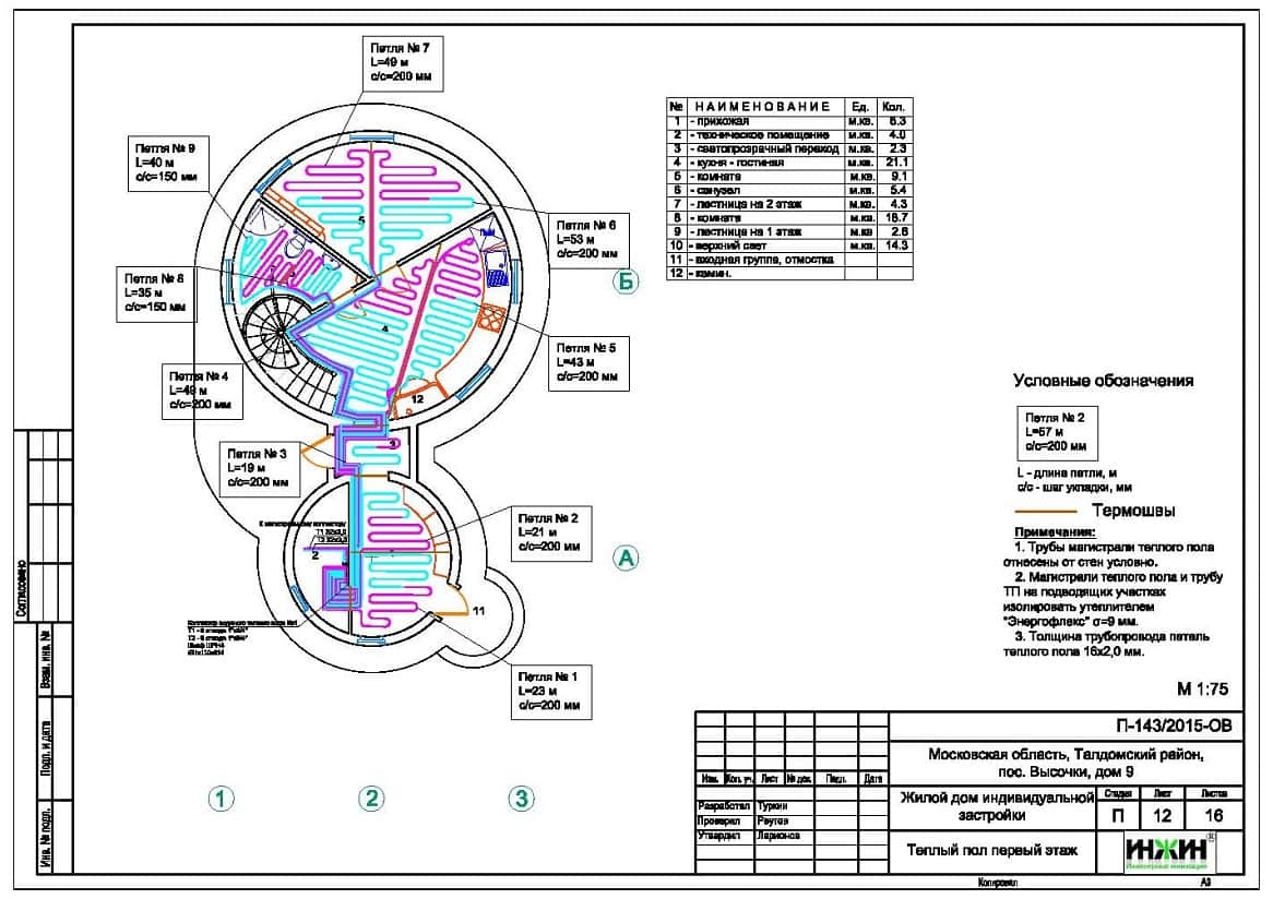 o Водяной теплый пол в доме спроектирован на площади 56 м.кв.;