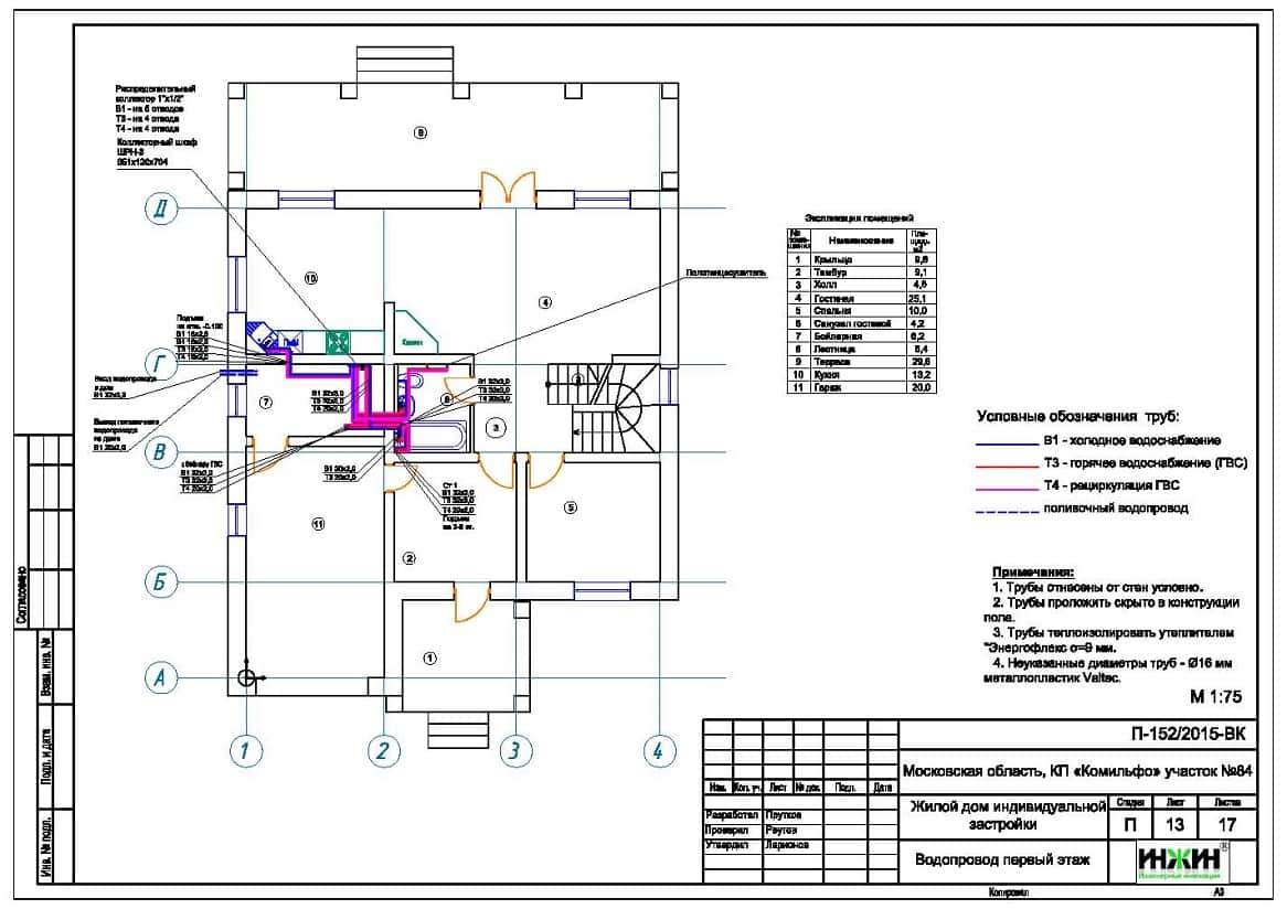 Проект отопления, водоснабжения и канализации выполнен: 14.12.2015