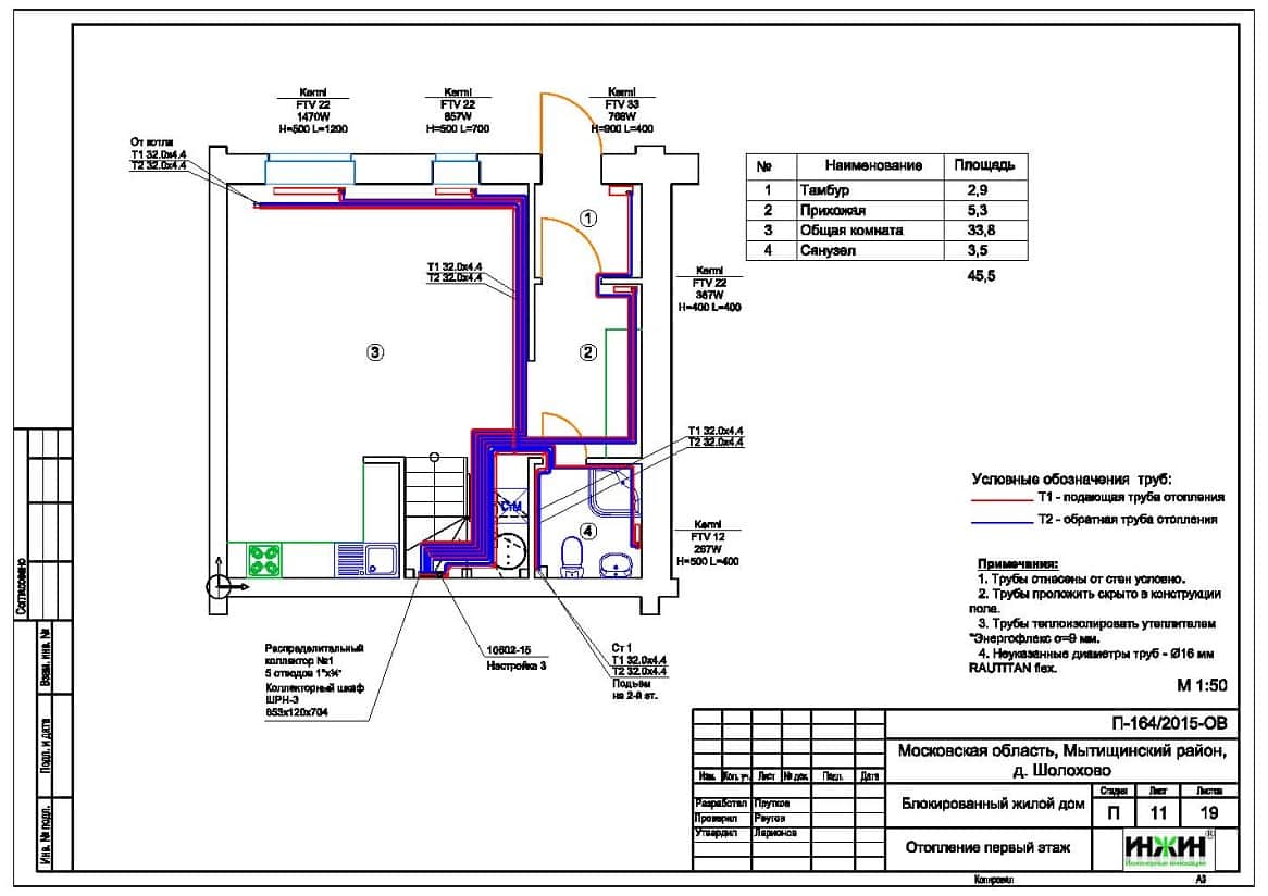 Проект отопления, водоснабжения и канализации таунхауса площадью 131 м.кв.