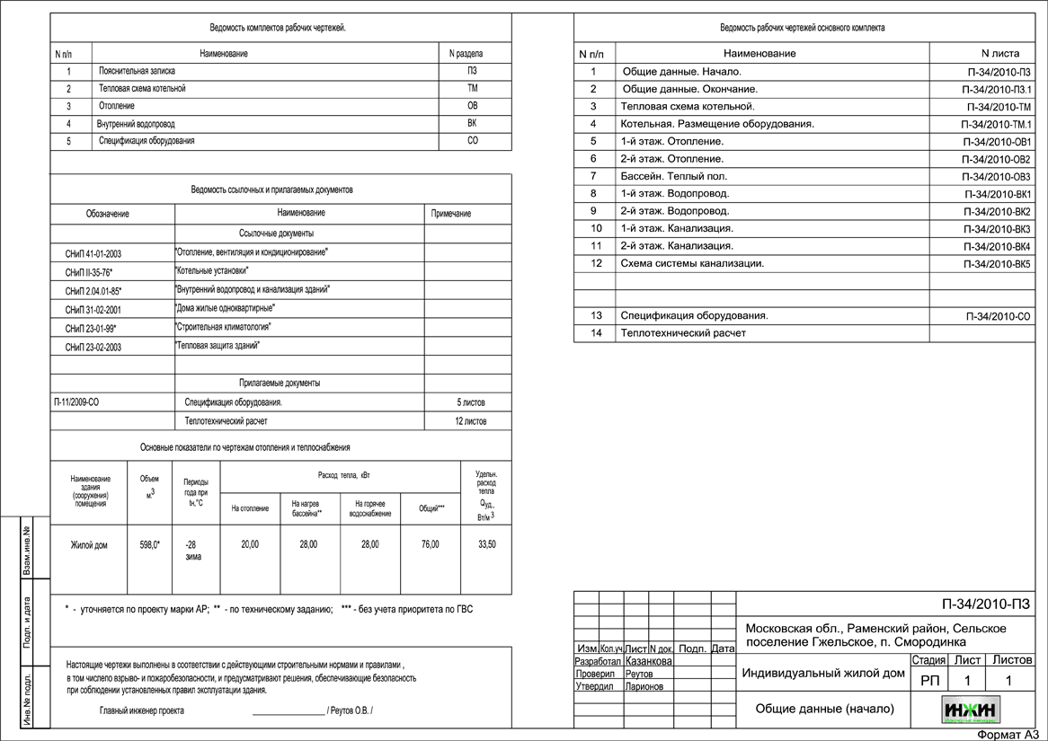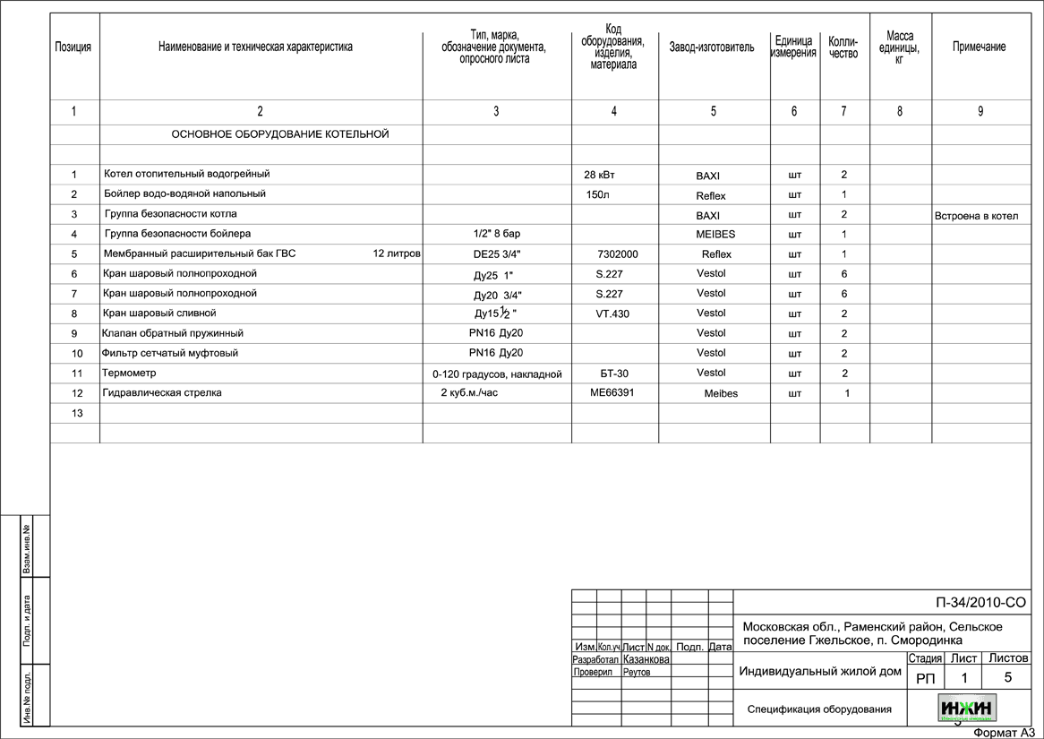 Состав проекта котельной, отопления, канализации и водоснабжения дома в пос. Смородинка: