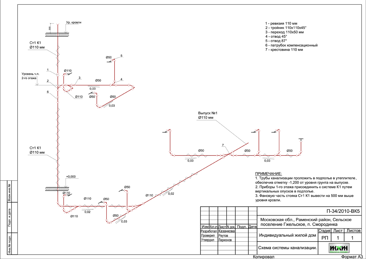 Внутренняя канализация (проект канализации) дома в пос. Смородинка.