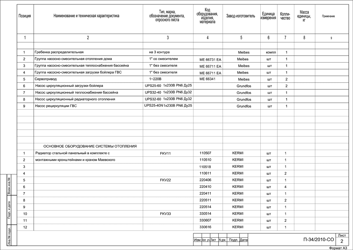 Объем проекта отопления, канализации и водоснабжения дома: 32 листа.