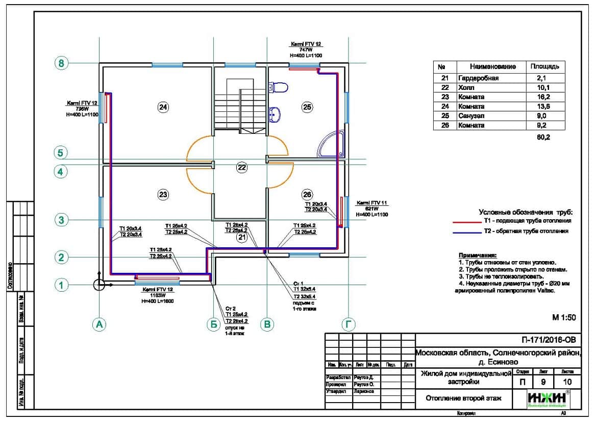 Стоимость проекта отопления: 22 500 руб. (проект котельной – бесплатно)