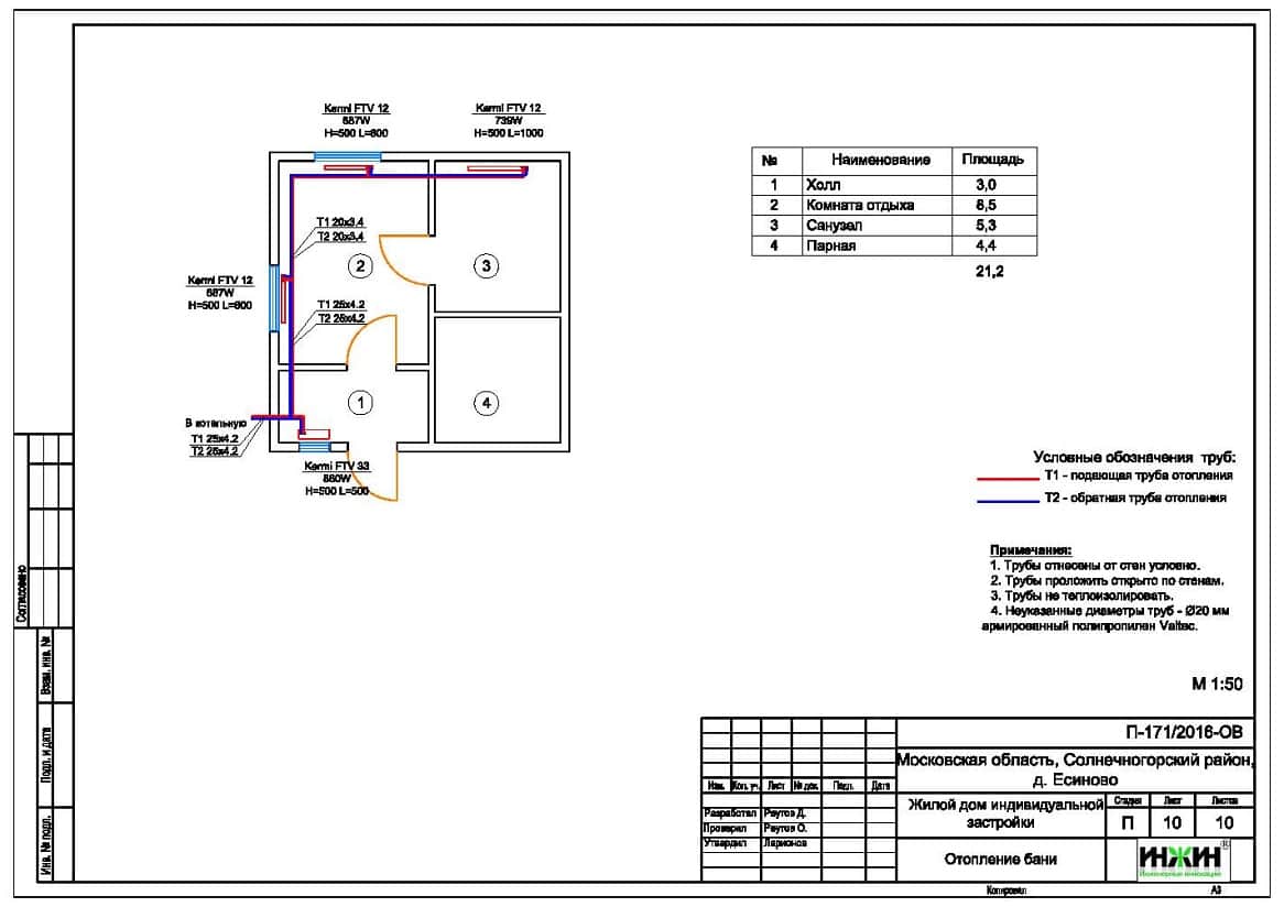 Проект отопления частного дома с баней общей площадью 141 м.кв.