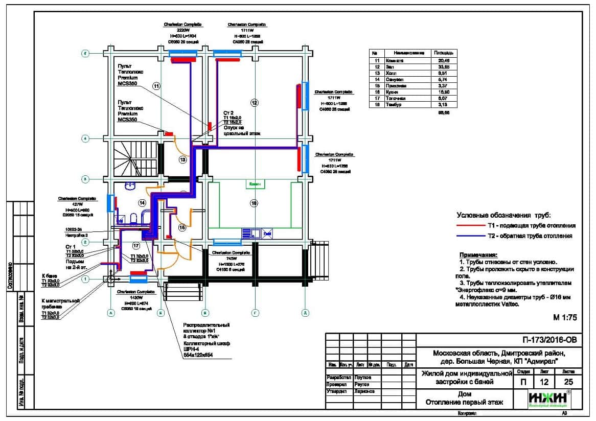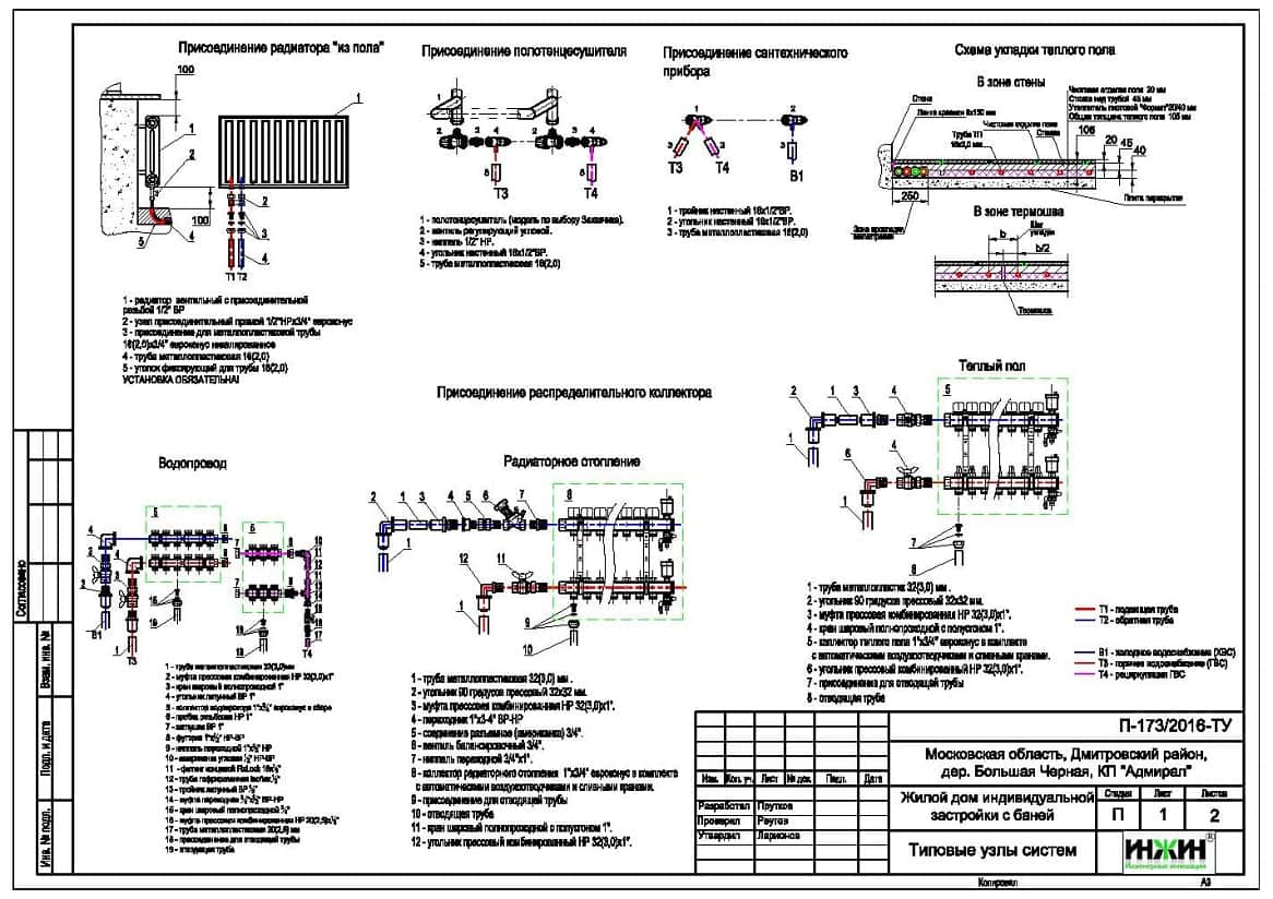 Проект отопления, водоснабжения и канализации дома с баней общей площадью 265 м.кв.