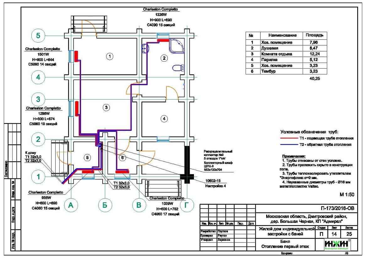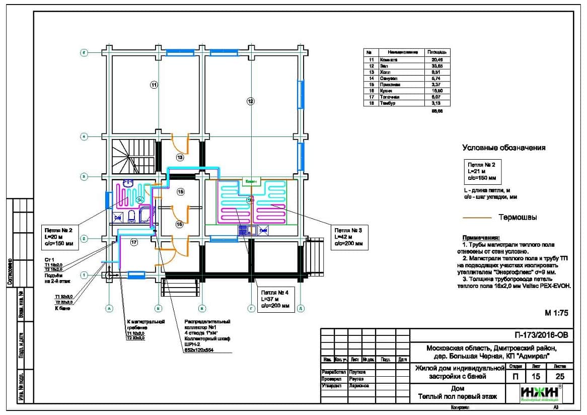 5. Комплект чертежей водяного теплого пола дома и бани.
