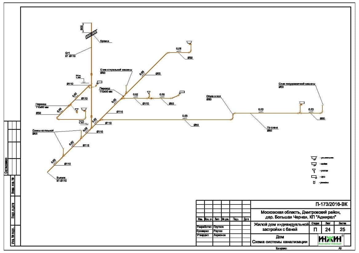 6. Комплект чертежей внутреннего водопровода и канализации дома и бани.
