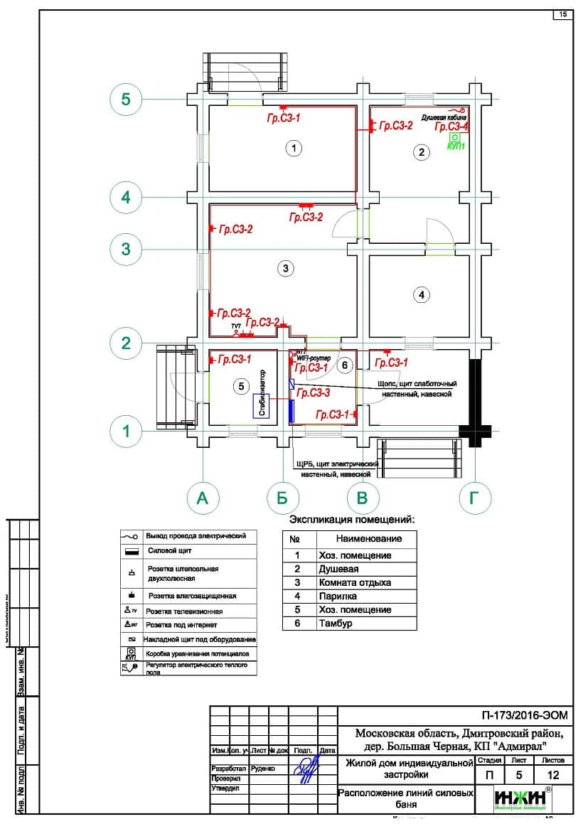 3. Поэтажные планы силовых электрических сетей дома и бани.