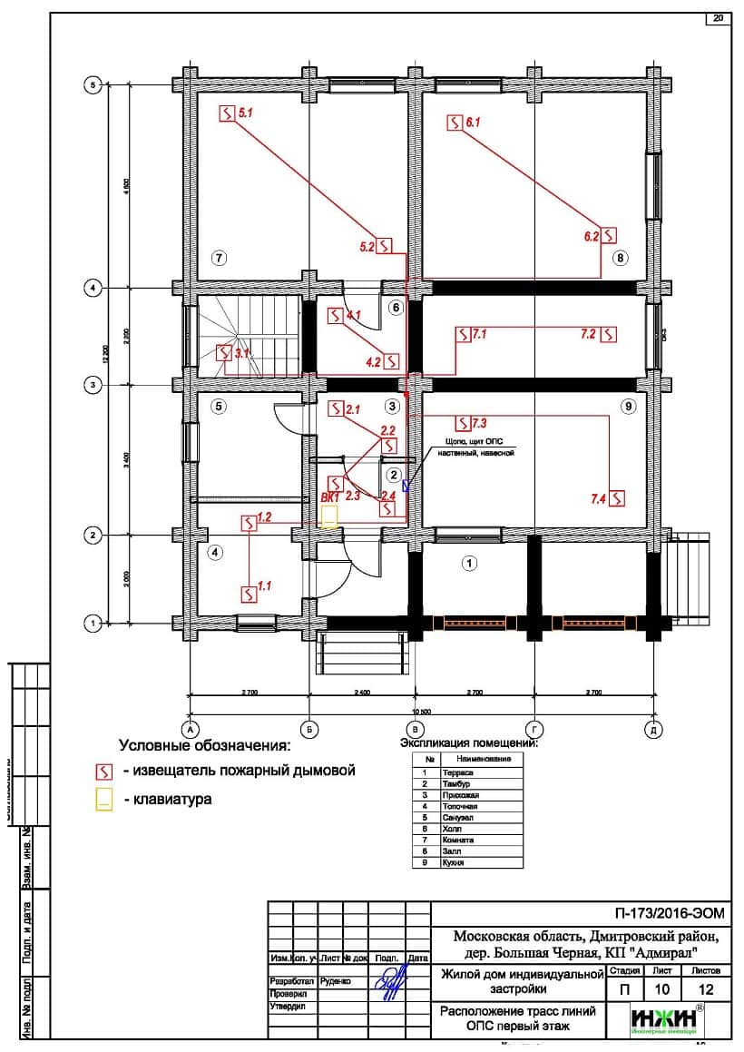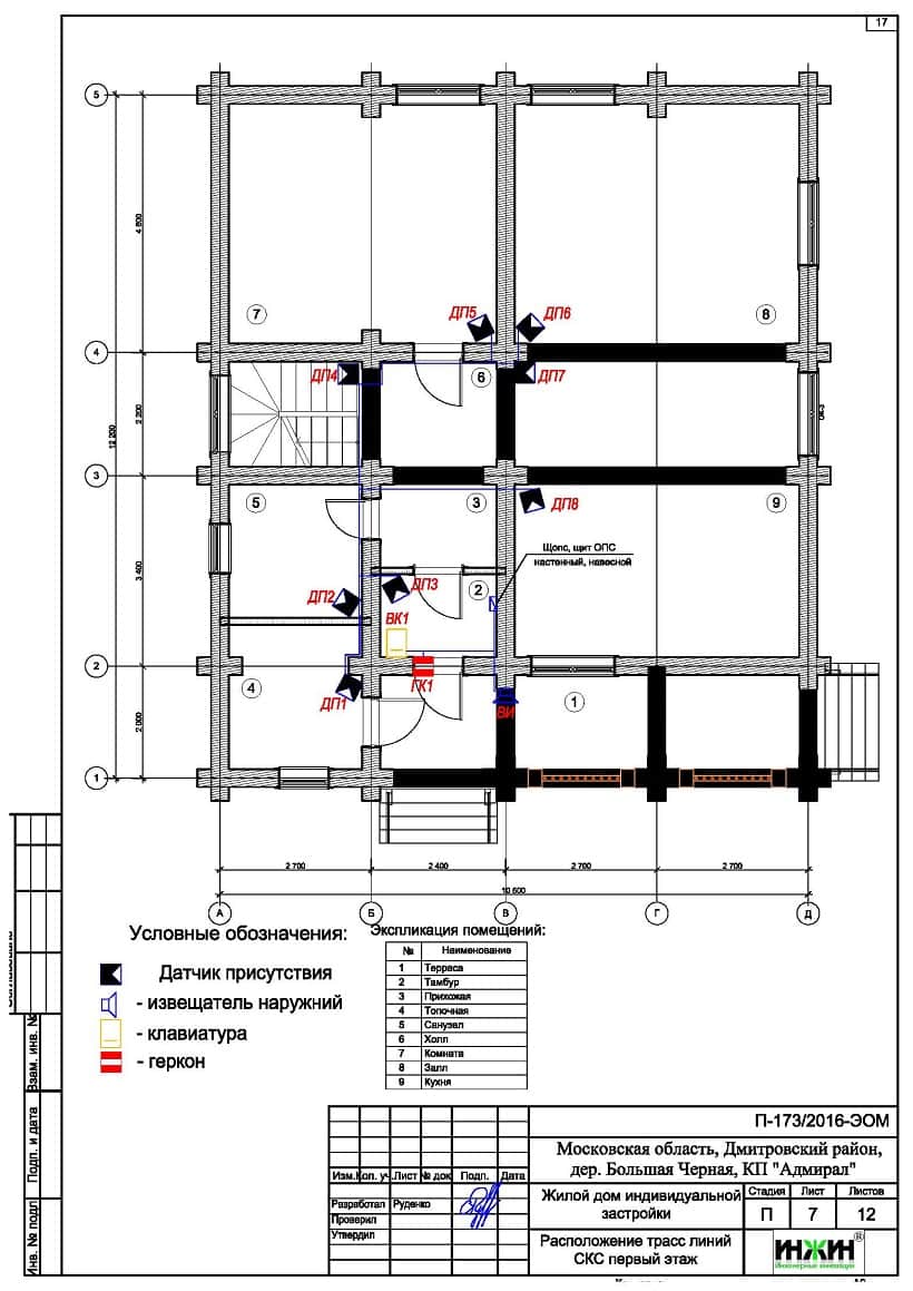 6. Схемы линий охранно-пожарной сигнализации дома и бани.