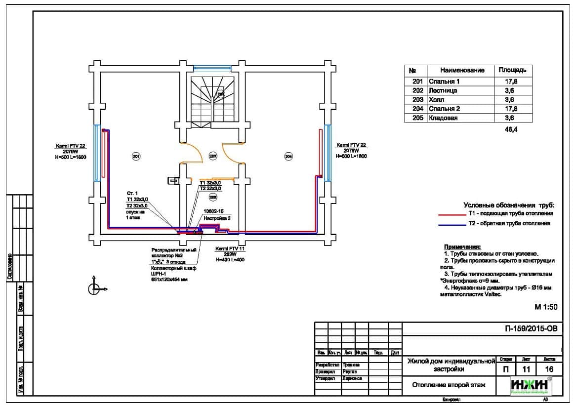 o Схема радиаторного отопления двухтрубная, коллекторно-лучевая, с принудительной циркуляцией теплоносителя;