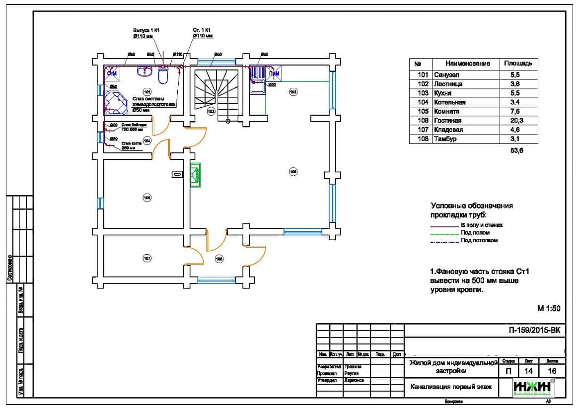 6. Комплект чертежей внутреннего водопровода и канализации.