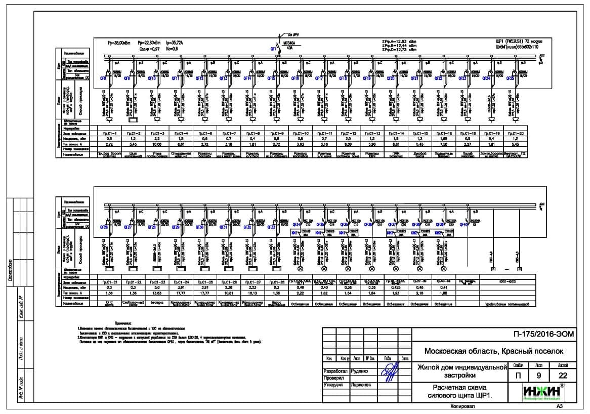 o Проектом предусмотрено два распределительных щита (на каждый этаж), оснащенных 72-мя автоматами;
