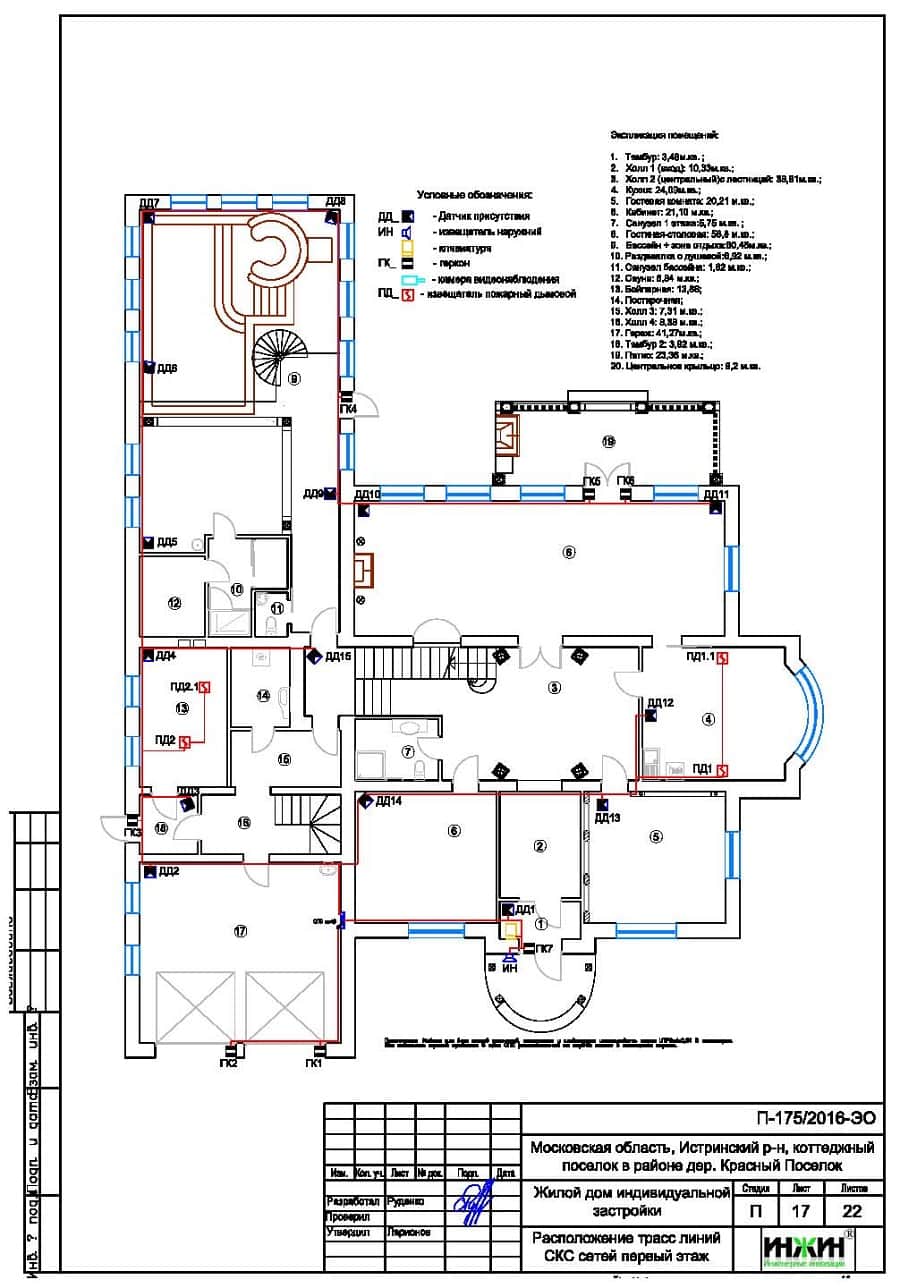 5. Поэтажные планы линий СКС дома (охранно-пожарная сигнализация, видеонаблюдение).