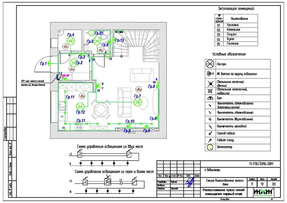 Проект электроснабжения и освещения таунхауса площадью 146 м.кв. в Москве