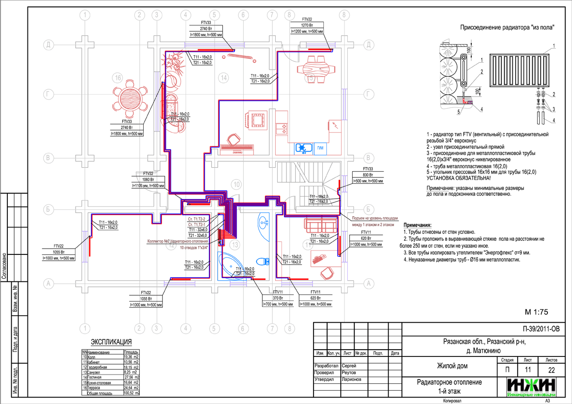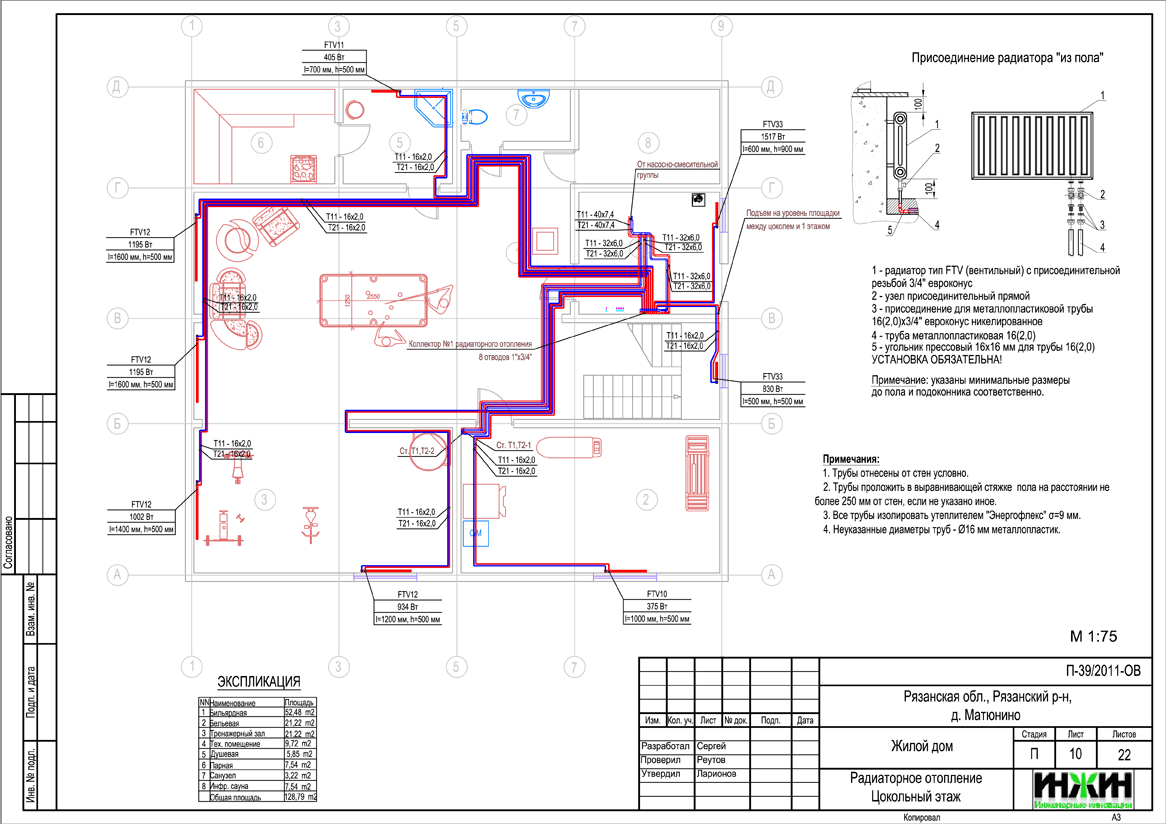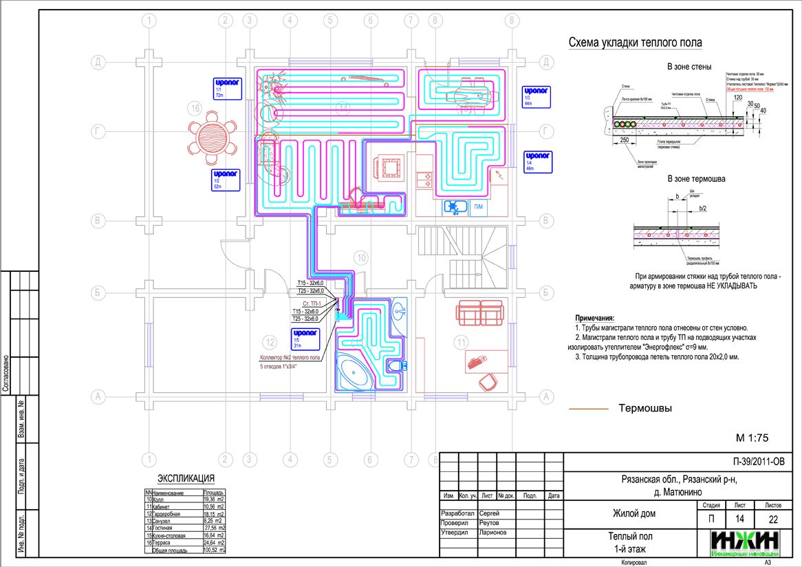 Водяной теплый пол дома в Рязанской области (проект теплого пола).