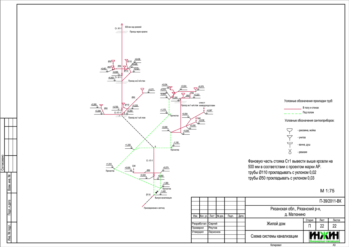 Внутренняя канализация (проект канализации) дома в Рязанской области.
