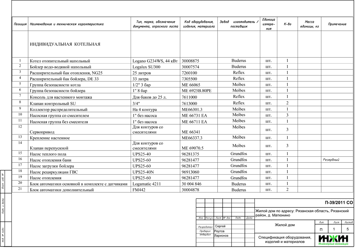 Состав проекта котельной, отопления, канализации и водоснабжения дома в Рязанской области: