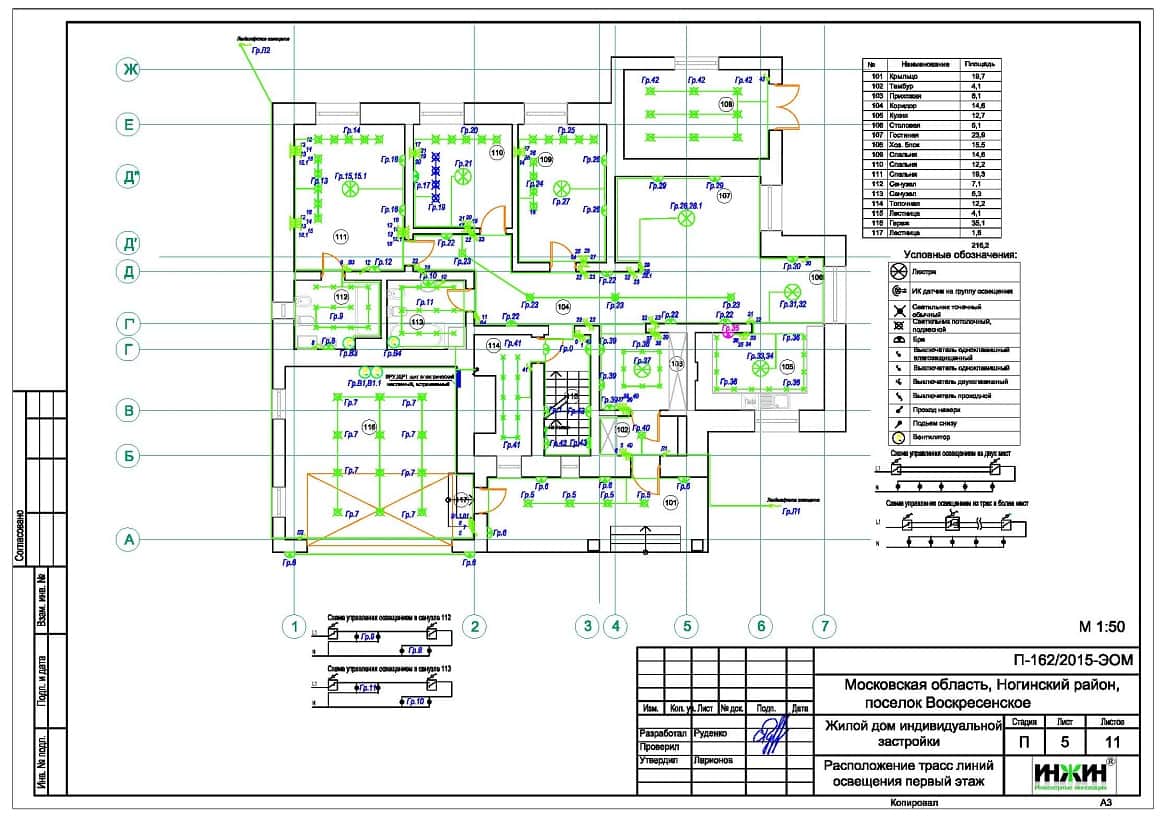 Проект электроснабжения и освещения дома площадью 435 м.кв. в Московской области