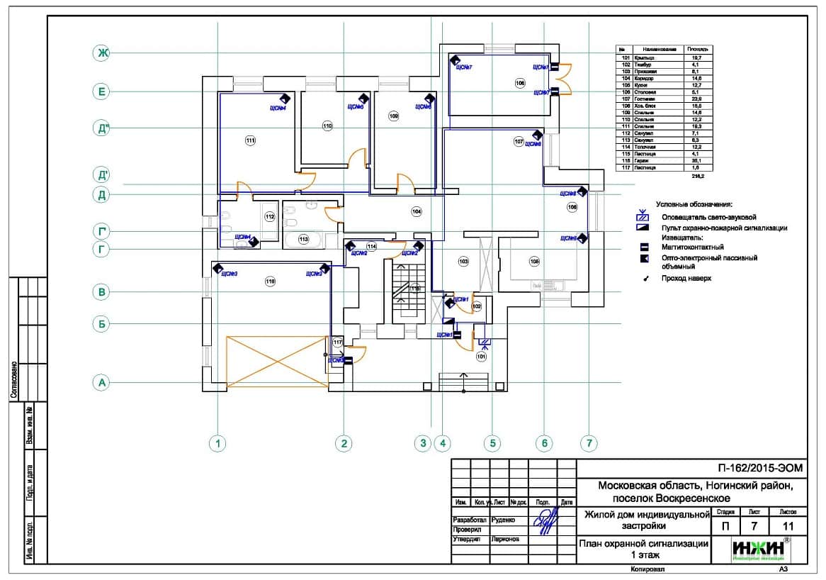 5. Поэтажные планы линий охранной сигнализации.