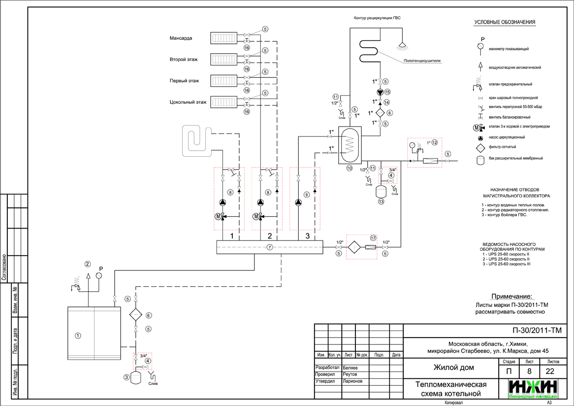 Состав проекта котельной, отопления, канализации и водоснабжения дома в г.Химки (мкр Сарбеево):