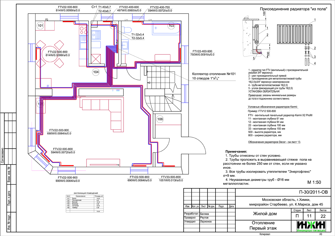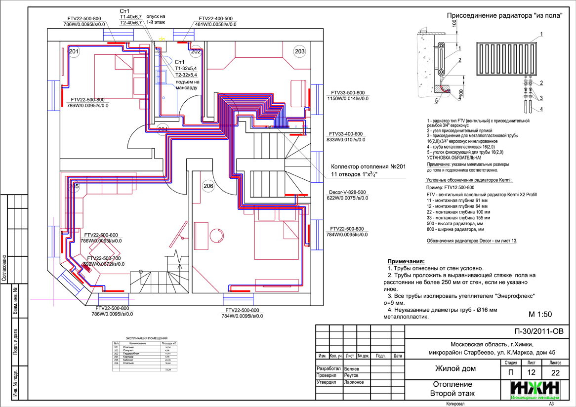 3. Комплект поэтажных чертежей радиаторного отопления дома в г.Химки (мкр Сарбеево).