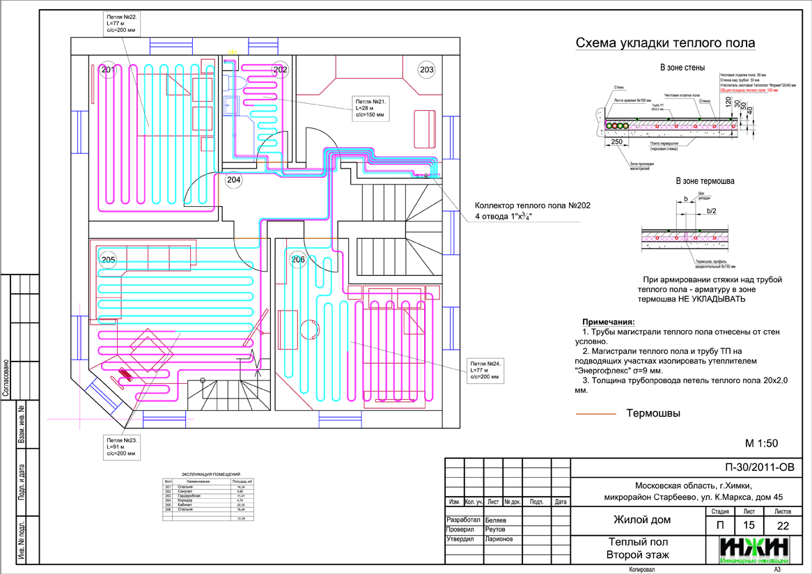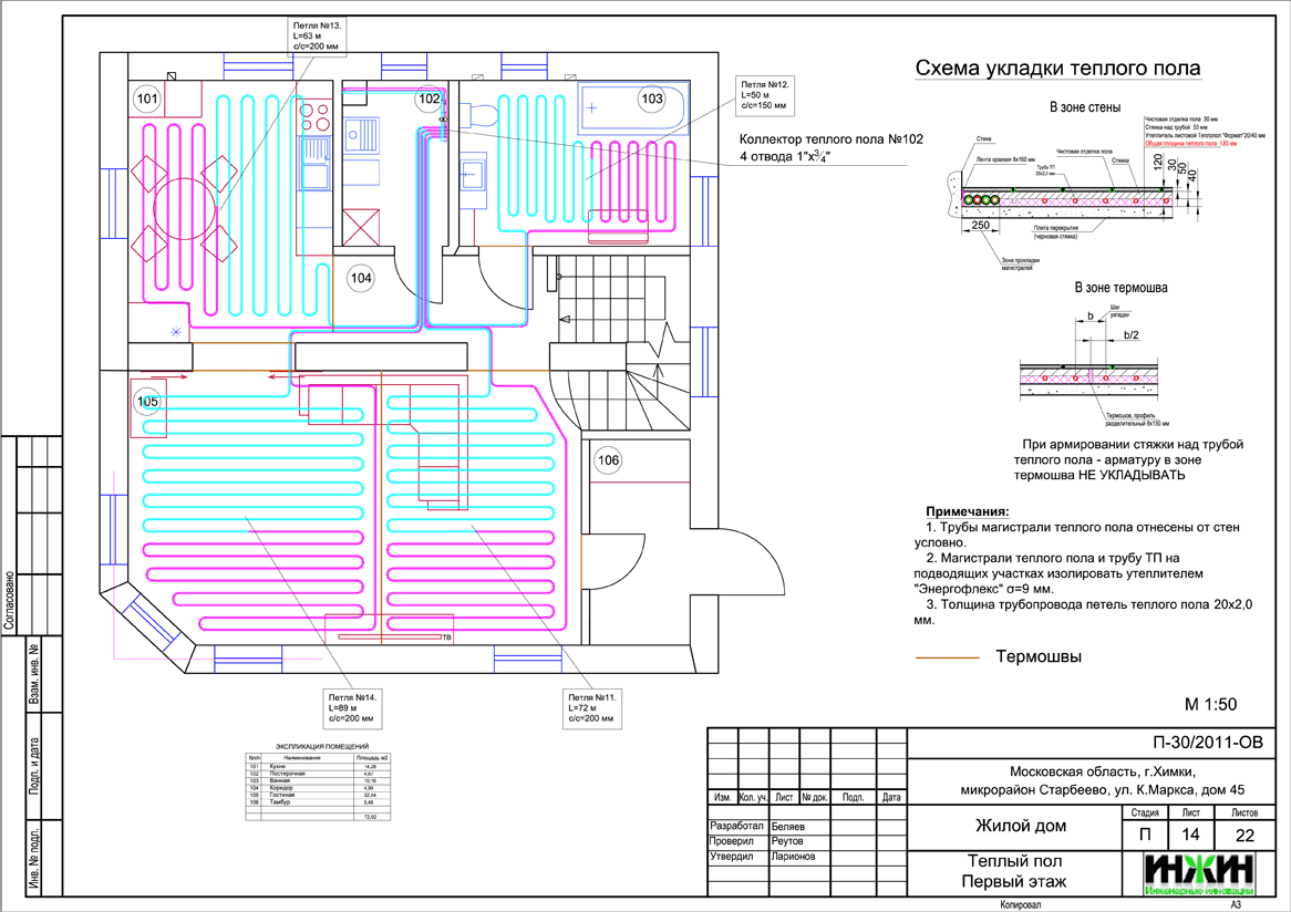 Водяной теплый пол дома в г.Химки (мкр Сарбеево) (проект теплого пола).