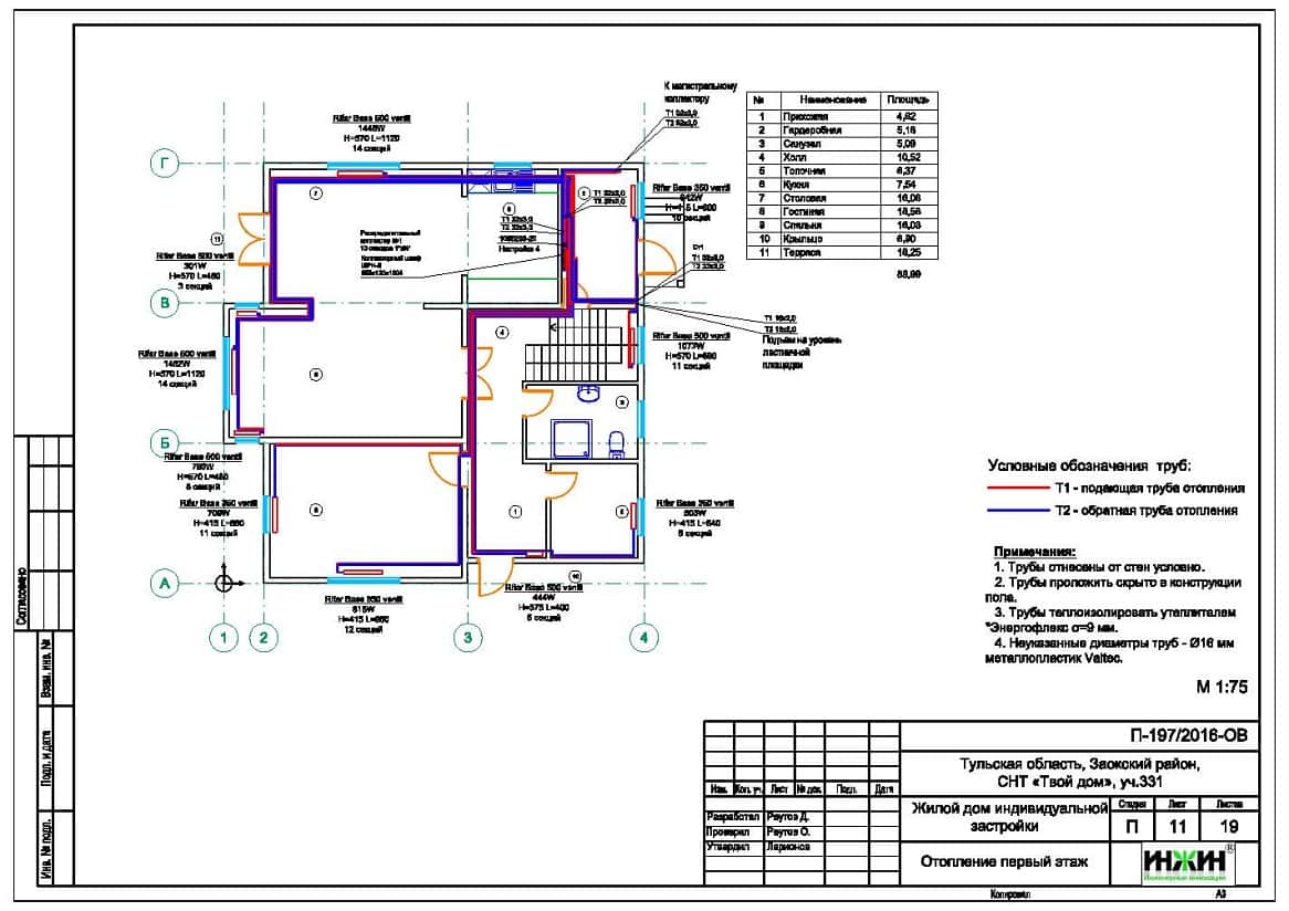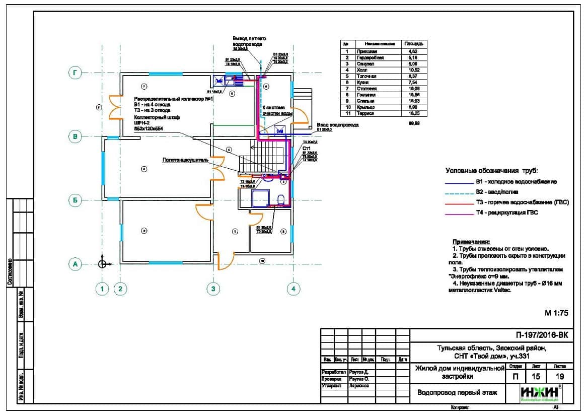 Проект отопления, водоснабжения и канализации дома площадью 200 м.кв. в Тульской области