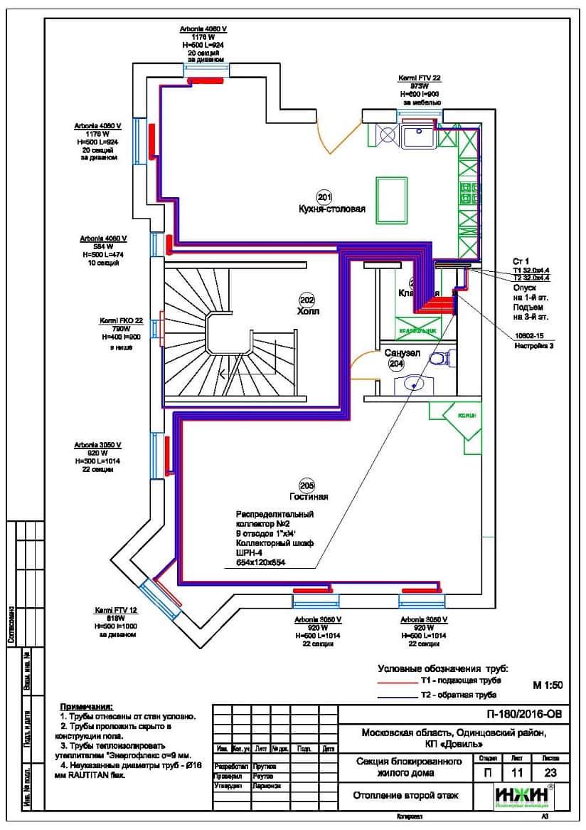 o Использованы стальные панельные радиаторы Kermi, а также дизайн-радиаторы Arbonia с нижним подключением;