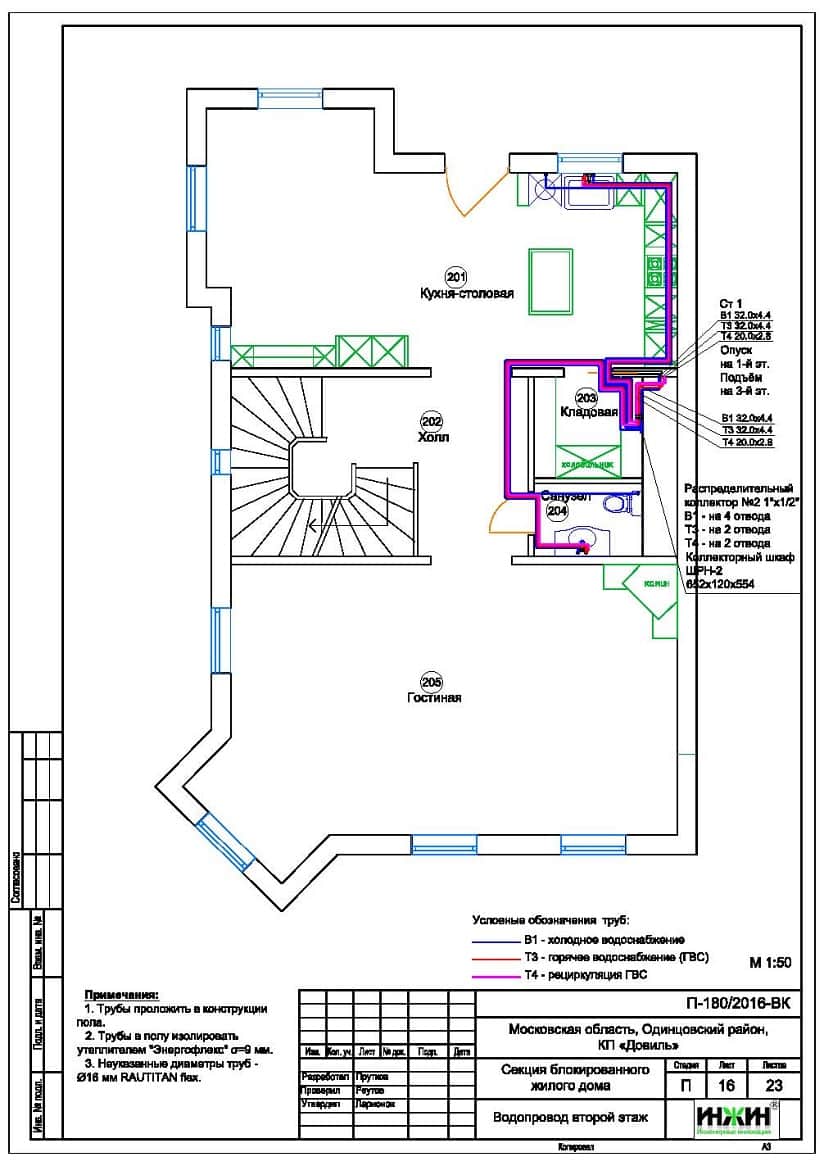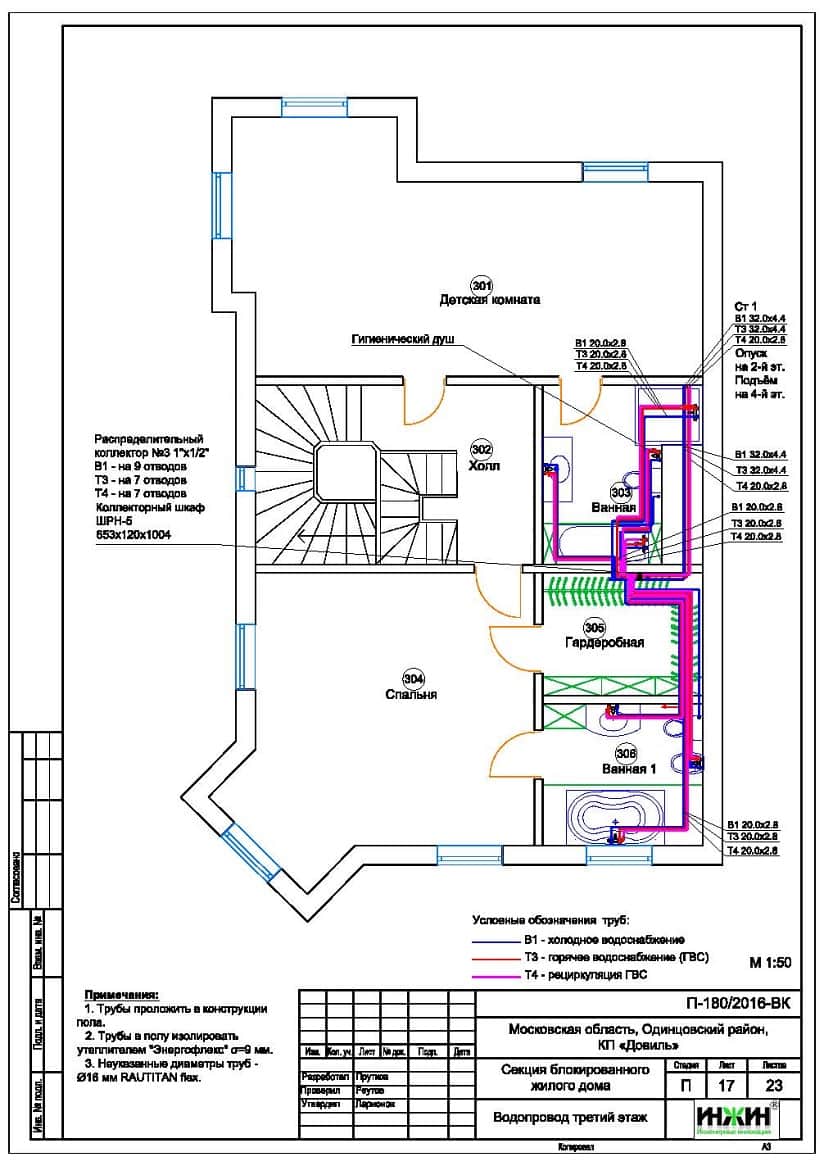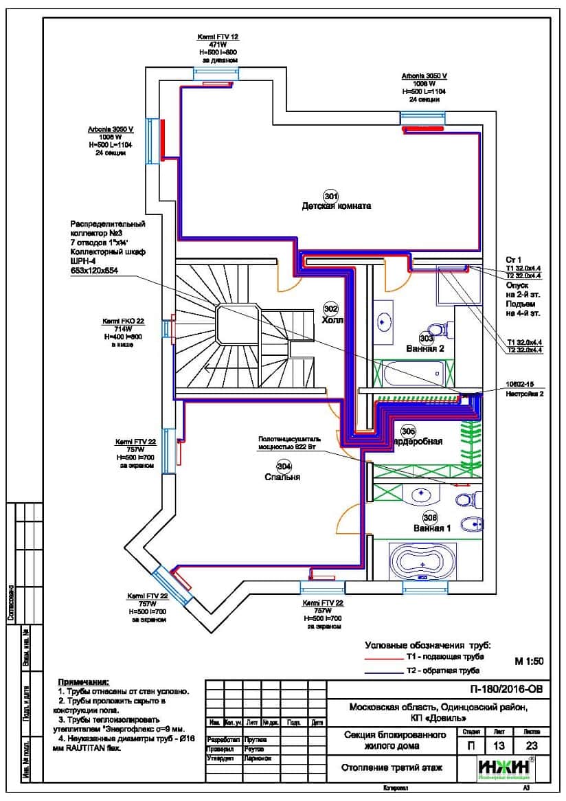 Проект отопления, водоснабжения и канализации таунхауса площадью 341 м.кв. в КП «Довиль»