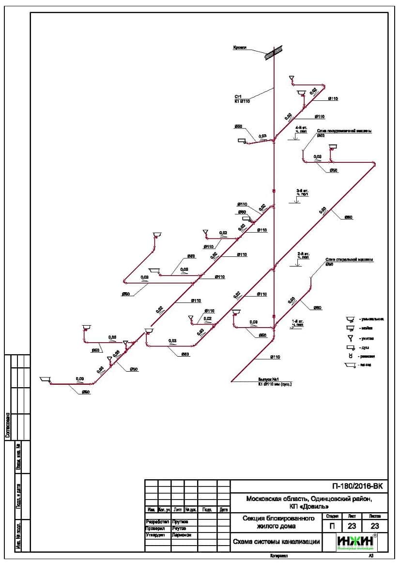 5. Схема системы канализации (аксонометрия).