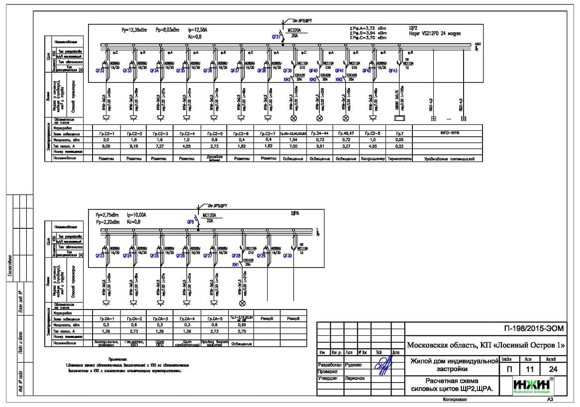2. Однолинейные схемы вводного распределительного устройства и поэтажных распределительных щитов.