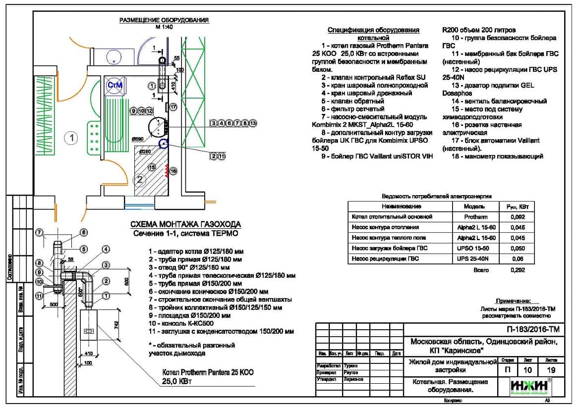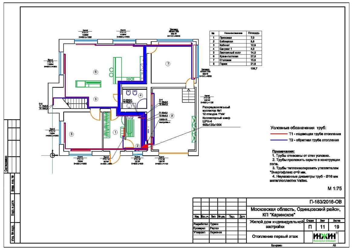 Проект отопления, водоснабжения и канализации дома площадью 181 м.кв. в КП «Каринское»