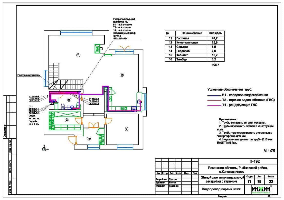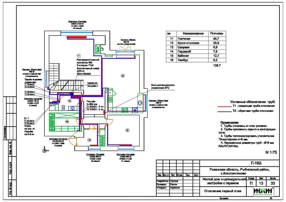 Проект отопления, водоснабжения и канализации дома с гаражом общей площадью 465 м.кв. в Рязанской области