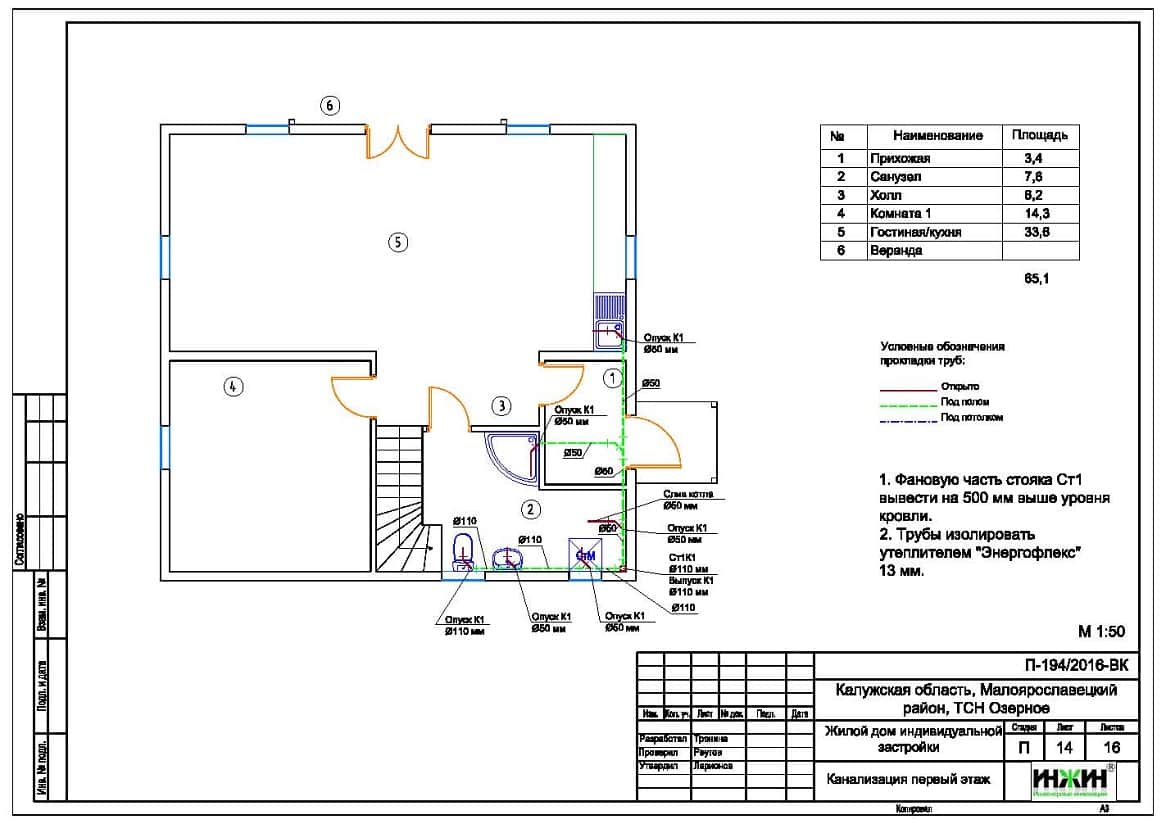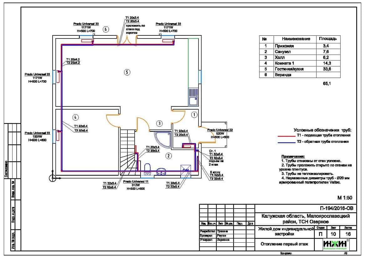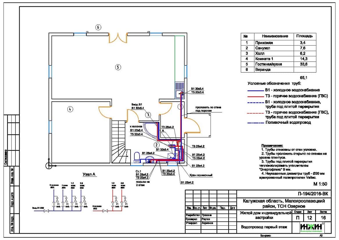 Проект отопления, водоснабжения и канализации дома площадью 135 м.кв. в Калужской области