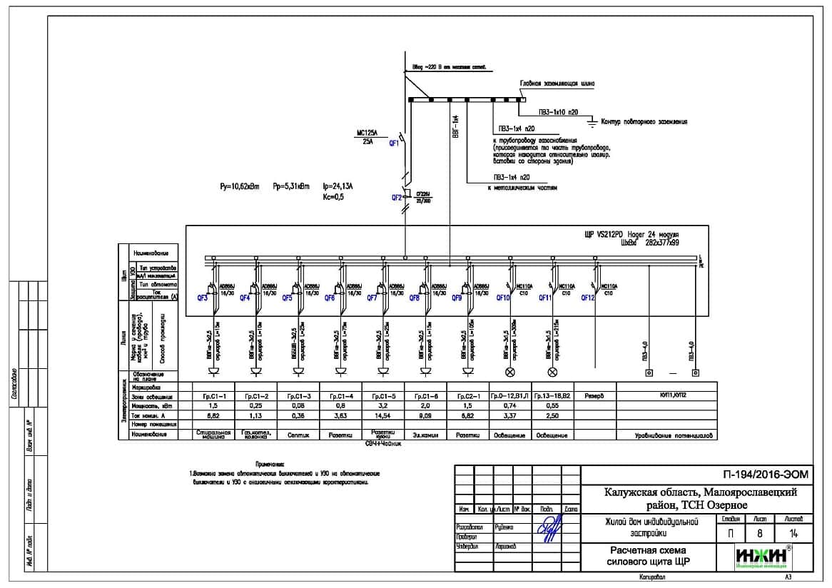Проект электрики дома площадью 135 м.кв. в ТСН «Озерное»