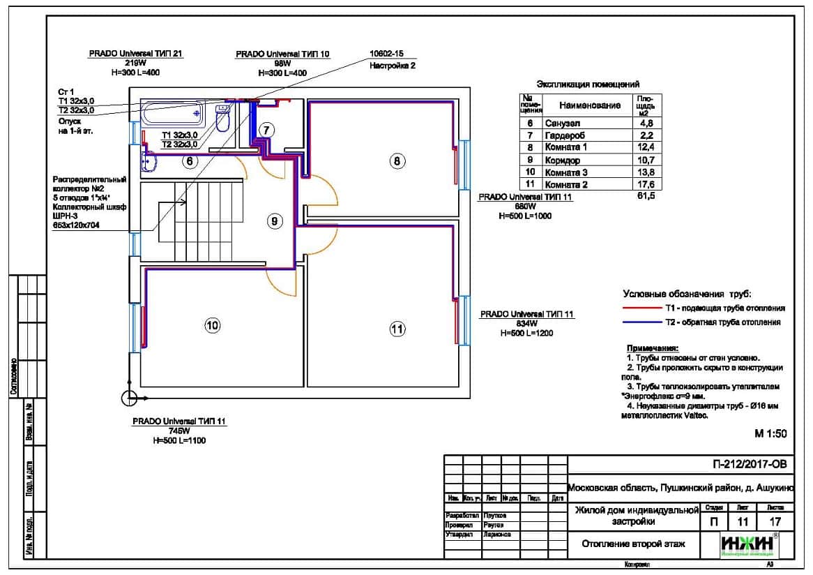 3. Поэтажные чертежи радиаторного отопления частного дома.