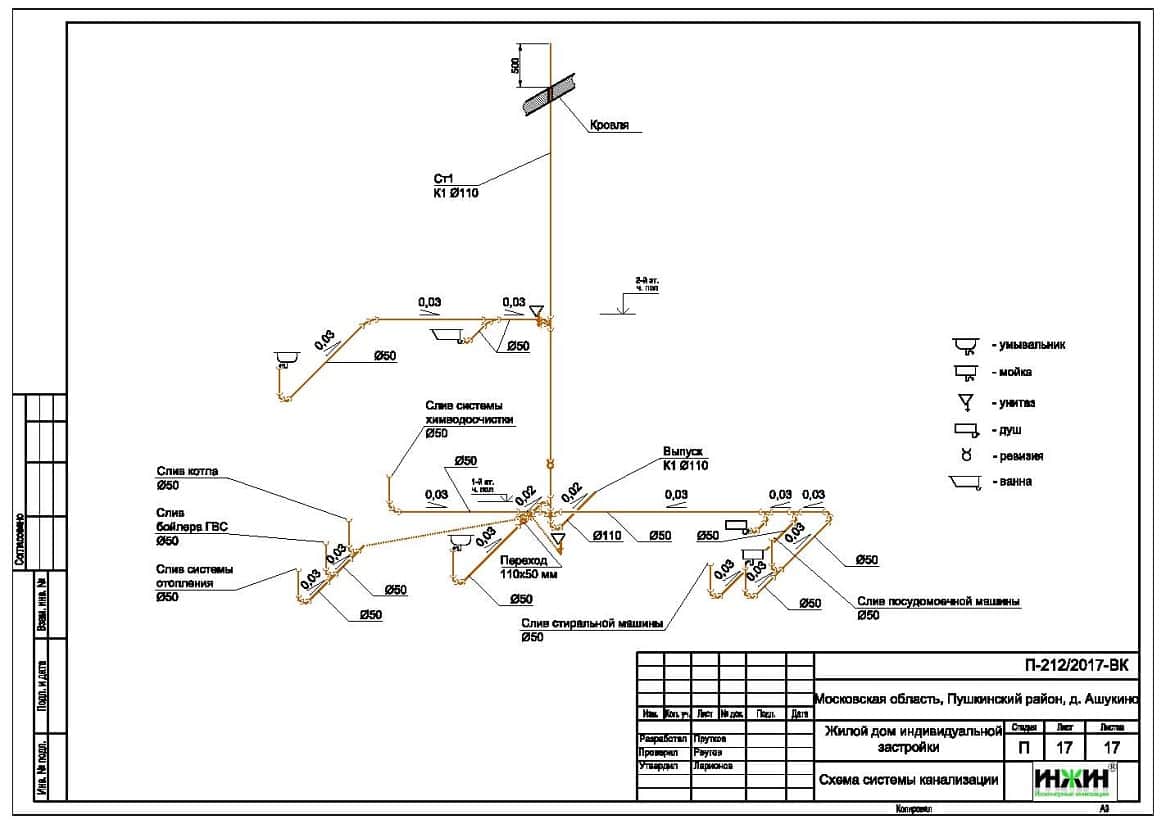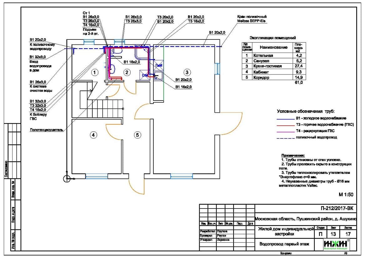 5. Чертежи внутреннего водопровода и канализации частного дома.