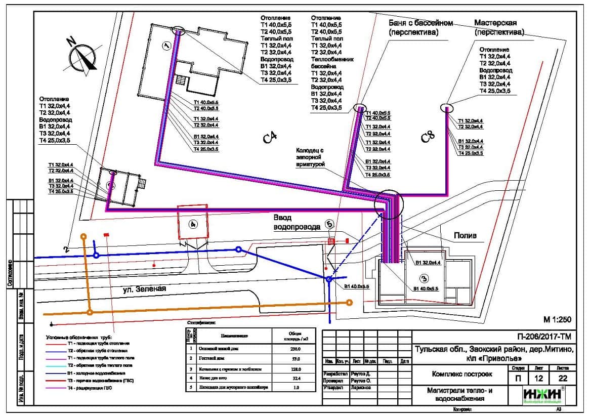 o Выполнен расчет и разработка трасс теплоснабжения и водопровода между строением котельной, домом и перспективными строениями на участке;