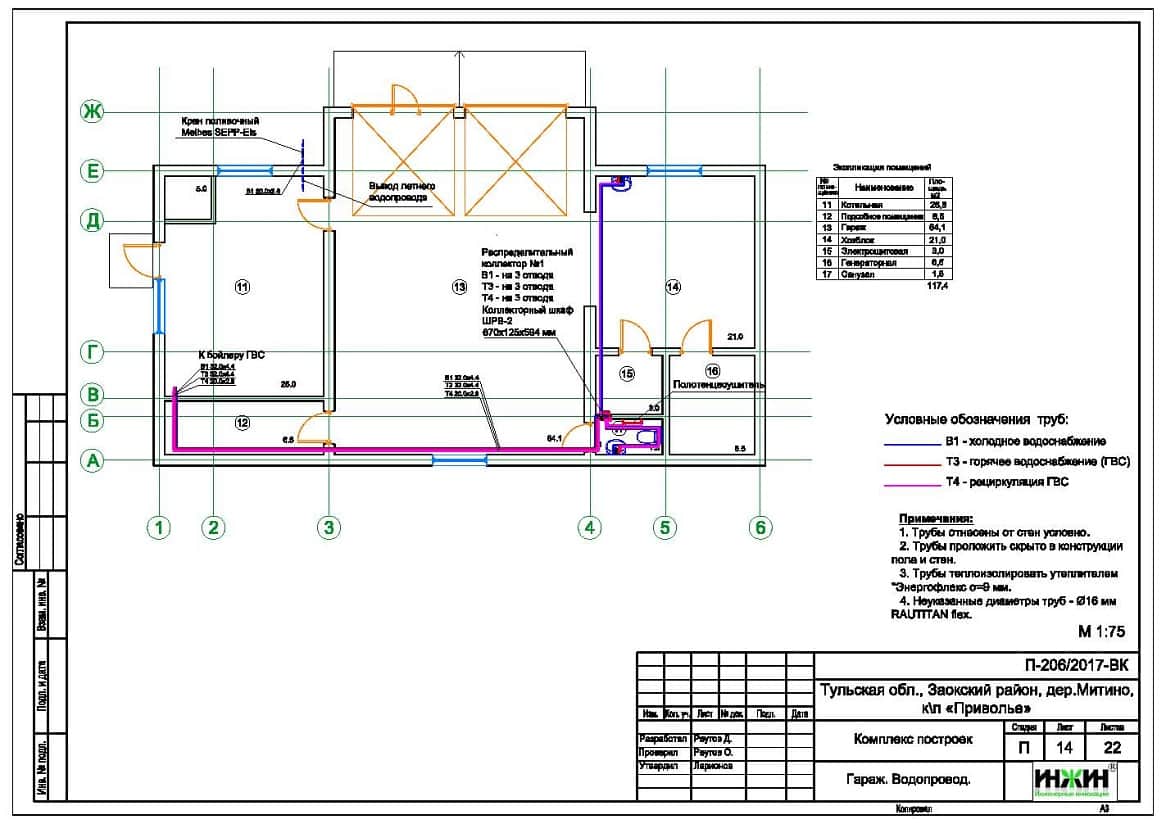o Схема внутреннего водопровода дома и гаража – коллекторная, с рециркуляцией горячей воды через проходные водорозетки;