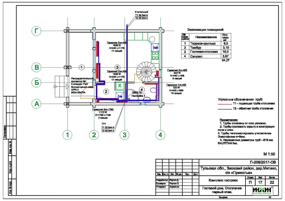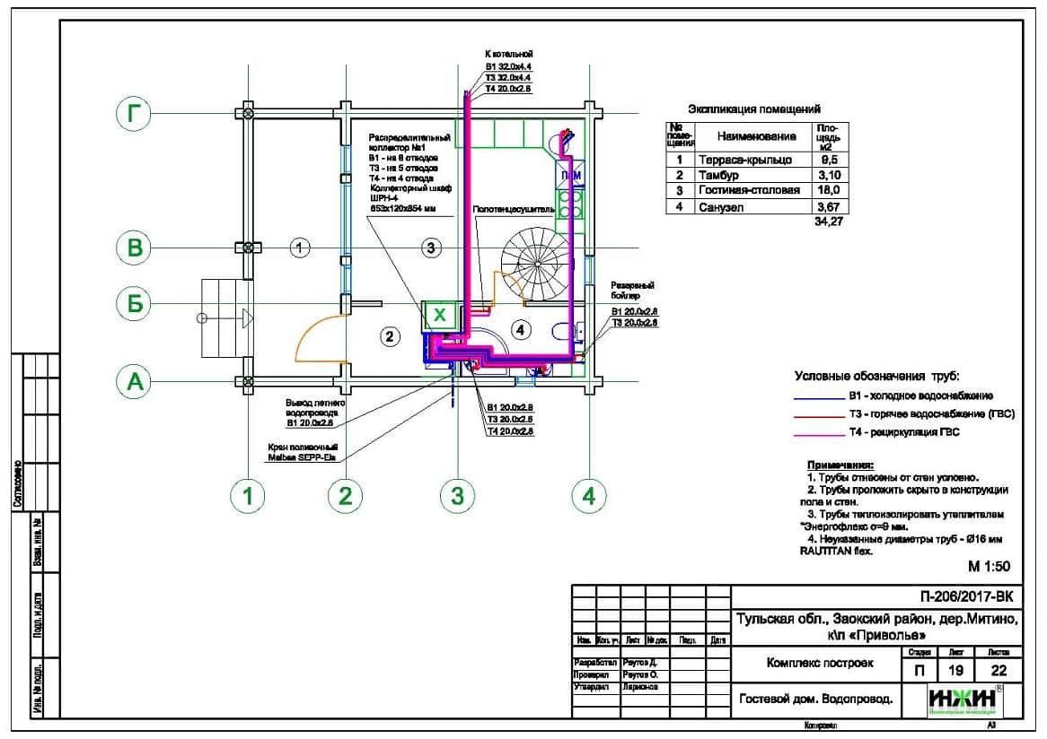 Проект котельной отопления, водоснабжения и канализации частного дома выполнен: 11.08.2017