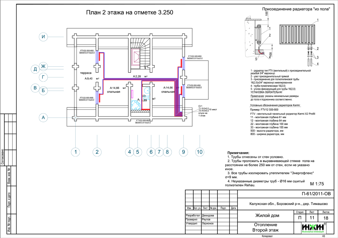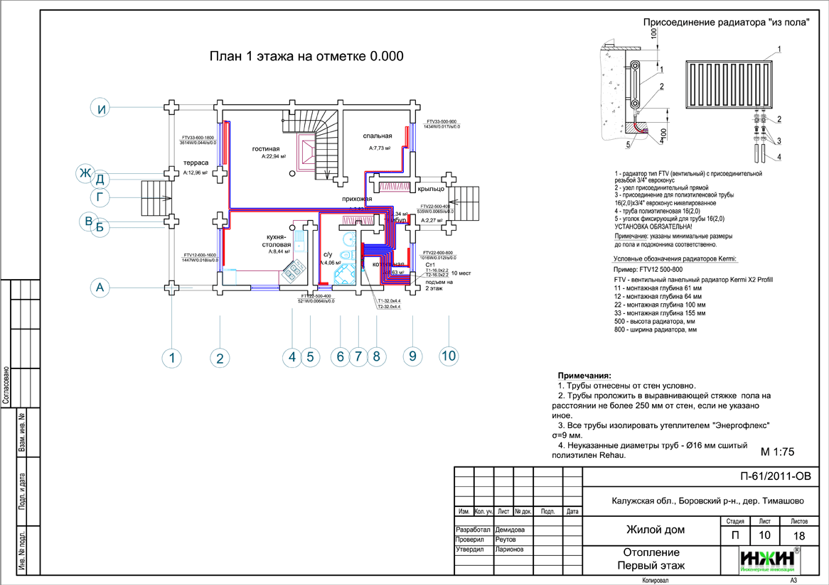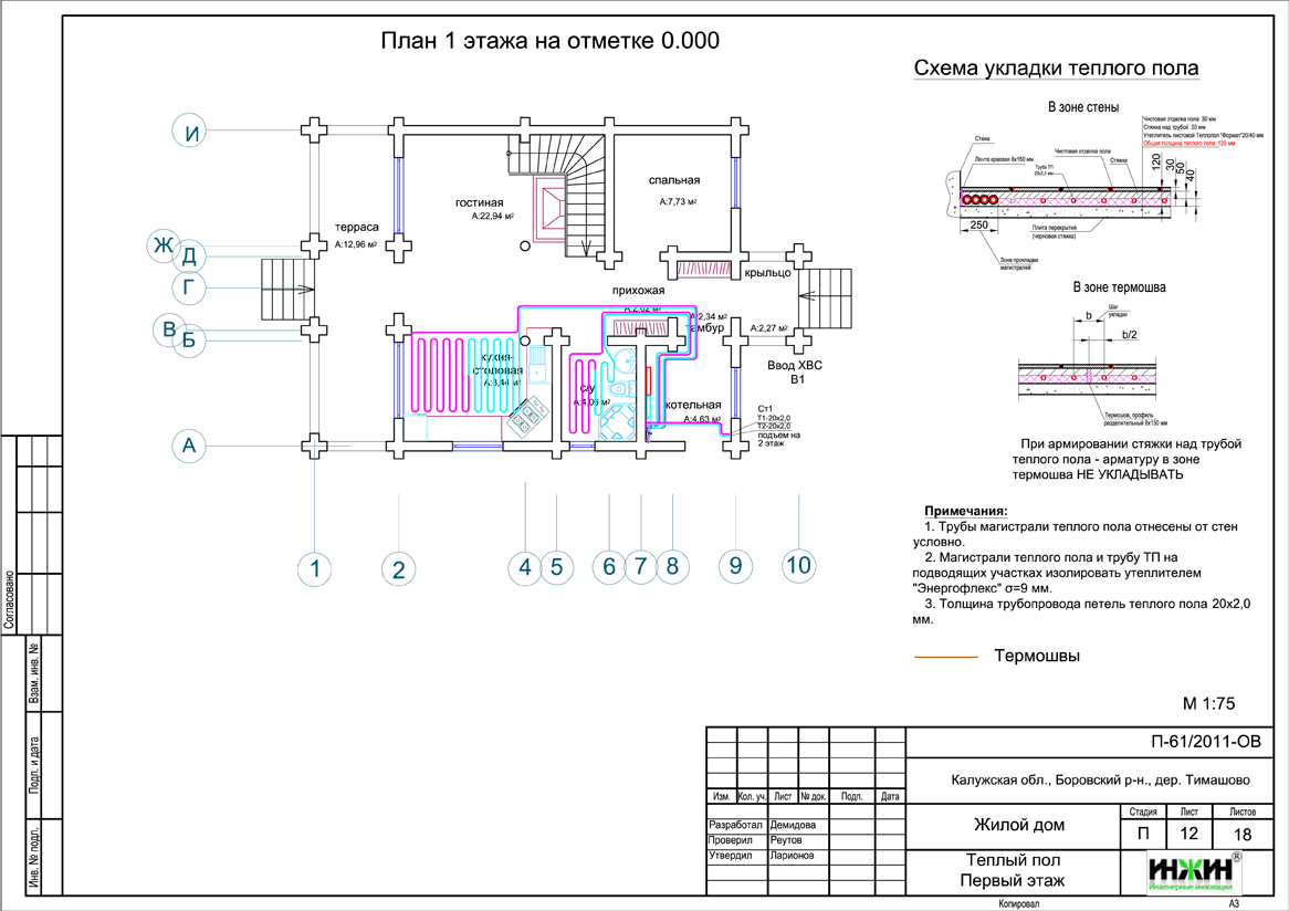 5. Комплект чертежей напольного отопления (теплого пола) жилого дома в Калужской области.